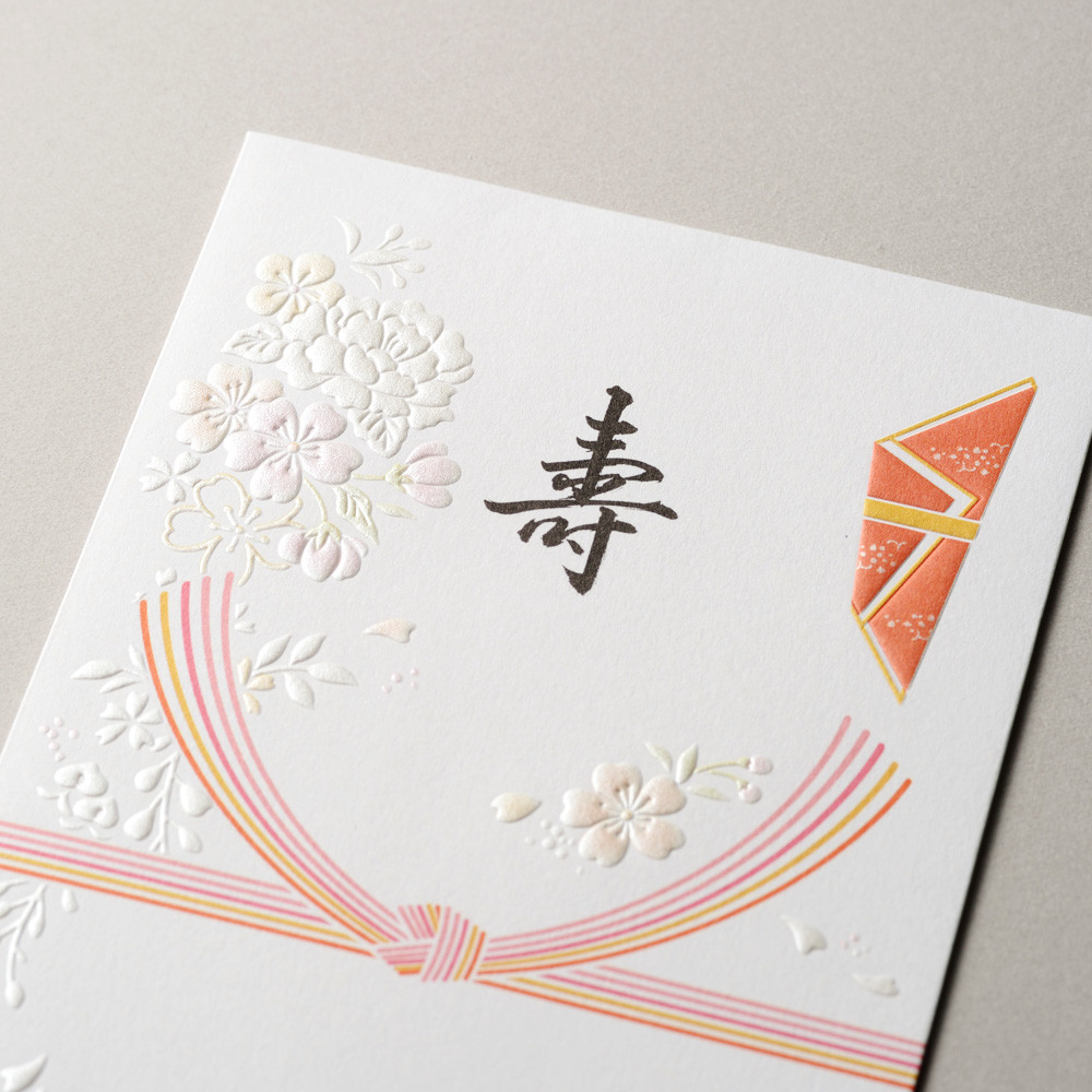 パールシルク印刷とエンボス加工がポイントの、婚礼用にぴったりな華やかなデザインののし袋です。