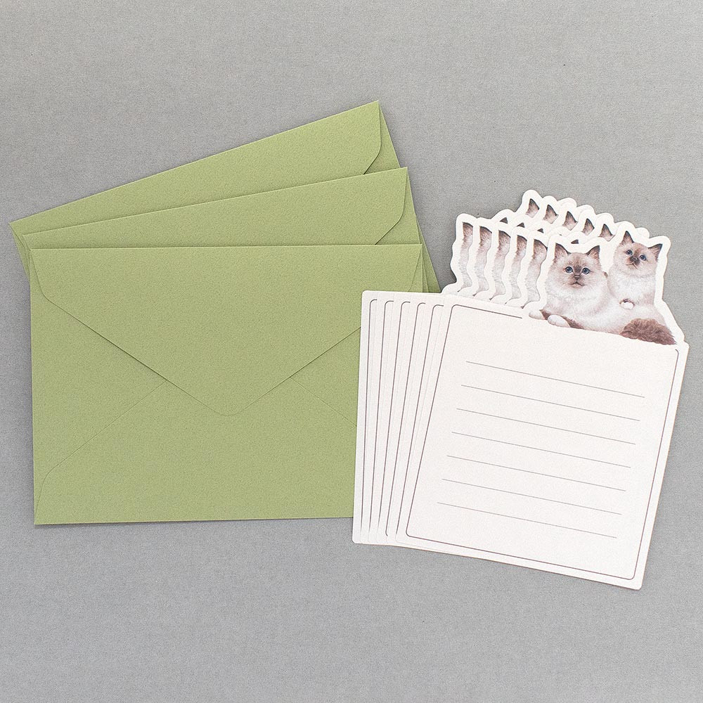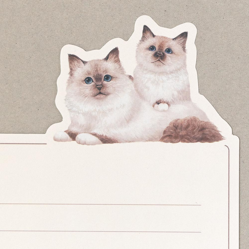 ダイカットの2匹のバーマンが可愛らしい、ちょっとしたお便りに便利なミニレターセットです。