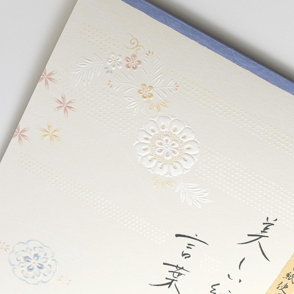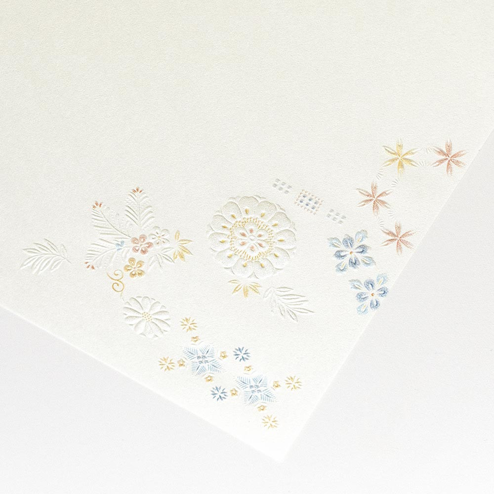 立体感のある加工が美しい、上品な紋柄の和紙便箋です。