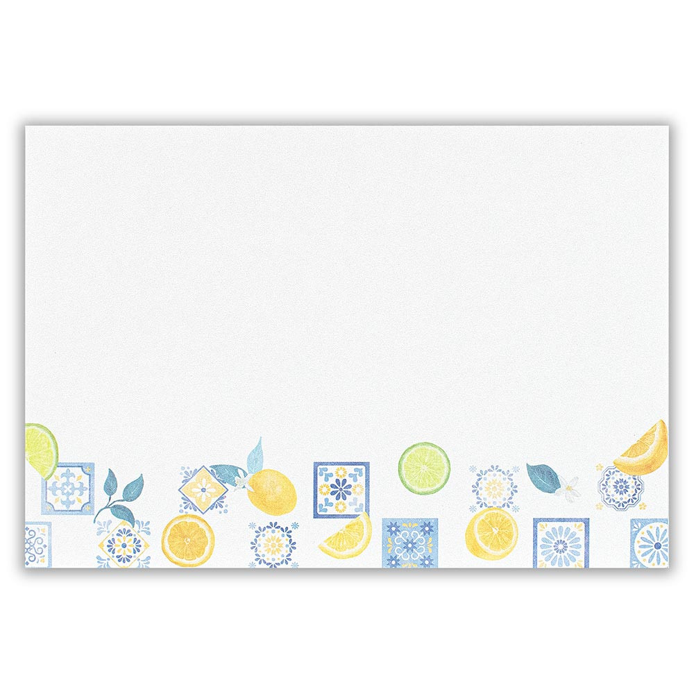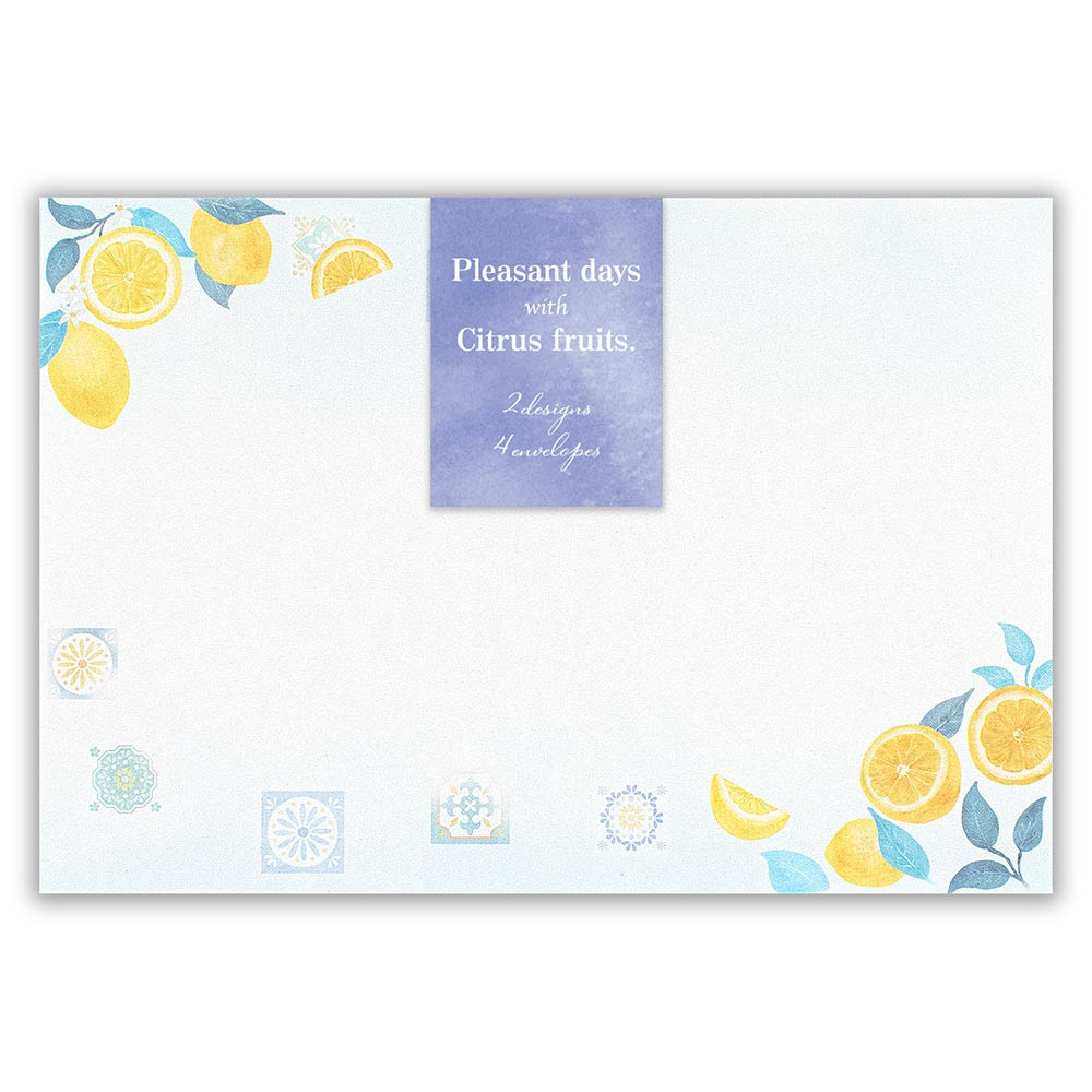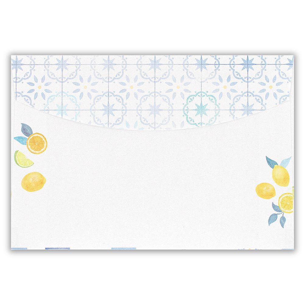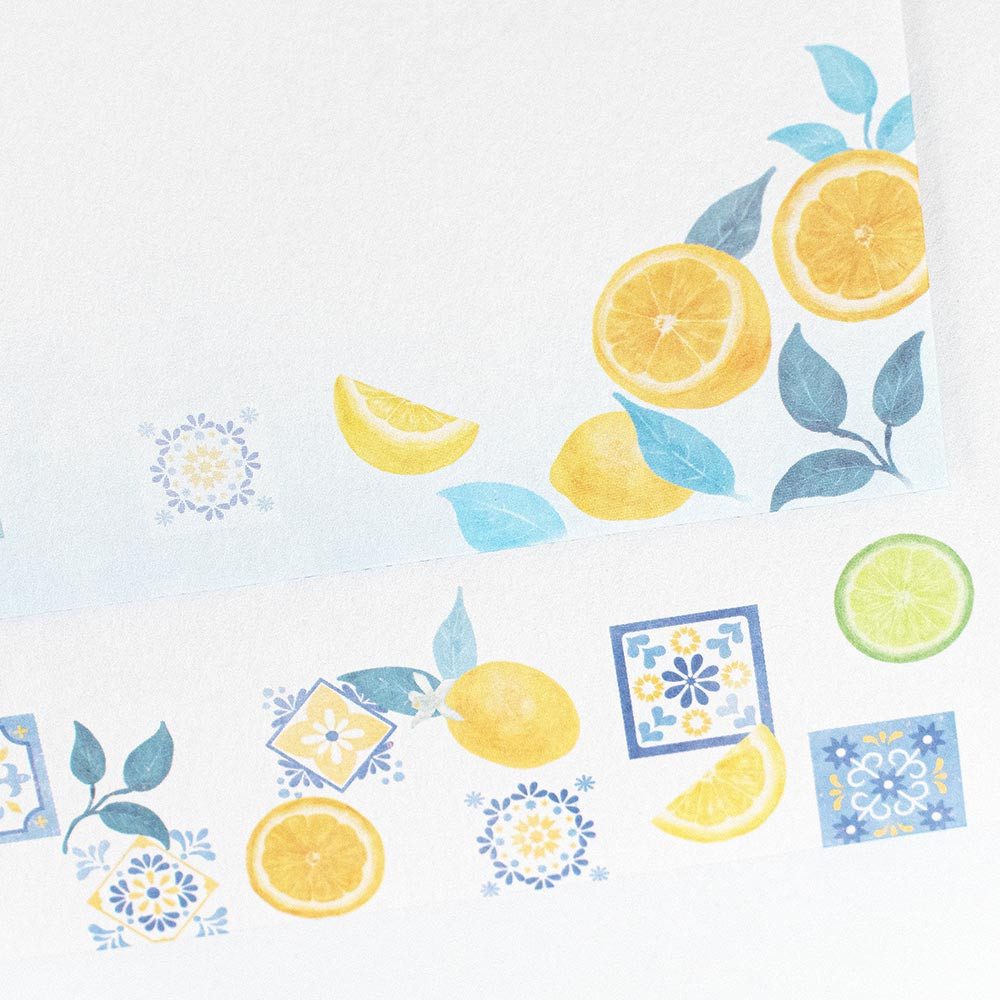 レモンやライムなどの柑橘類とブルーのタイルを爽やかなテイストで描きました。 風合いのある和紙を使用しており、2種類の柄を楽しめます。