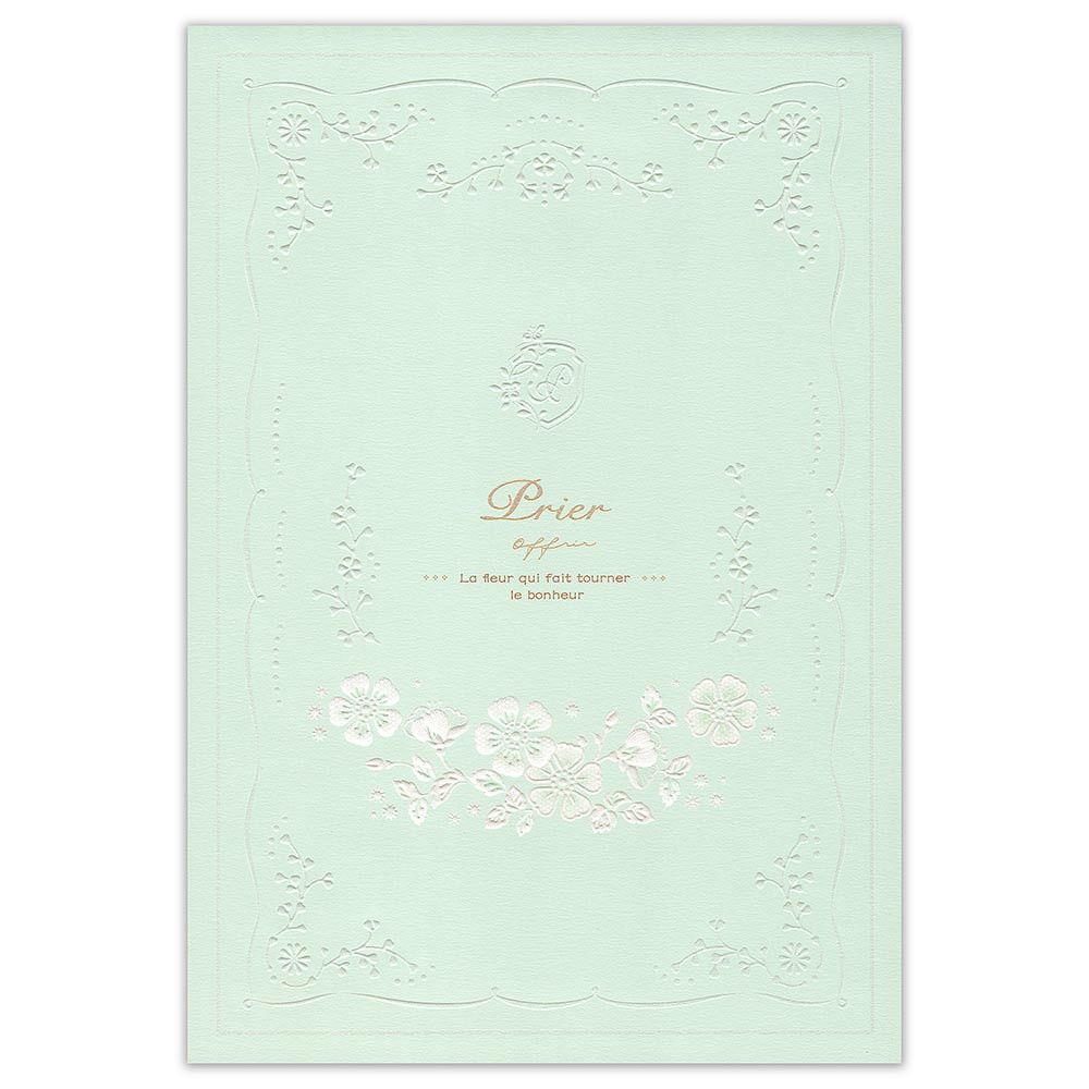 柔らかく輝くミントカラーの花々をあしらい、文面を引き立たせる上品なデザインにまとめました。
