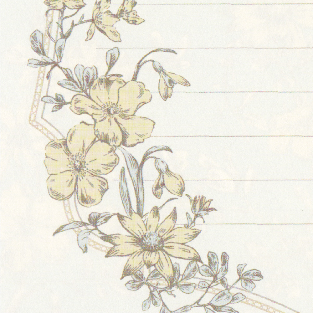 爽やかなブルー地にクラシカルで上品な花柄を繊細なタッチで描いた便箋です。
