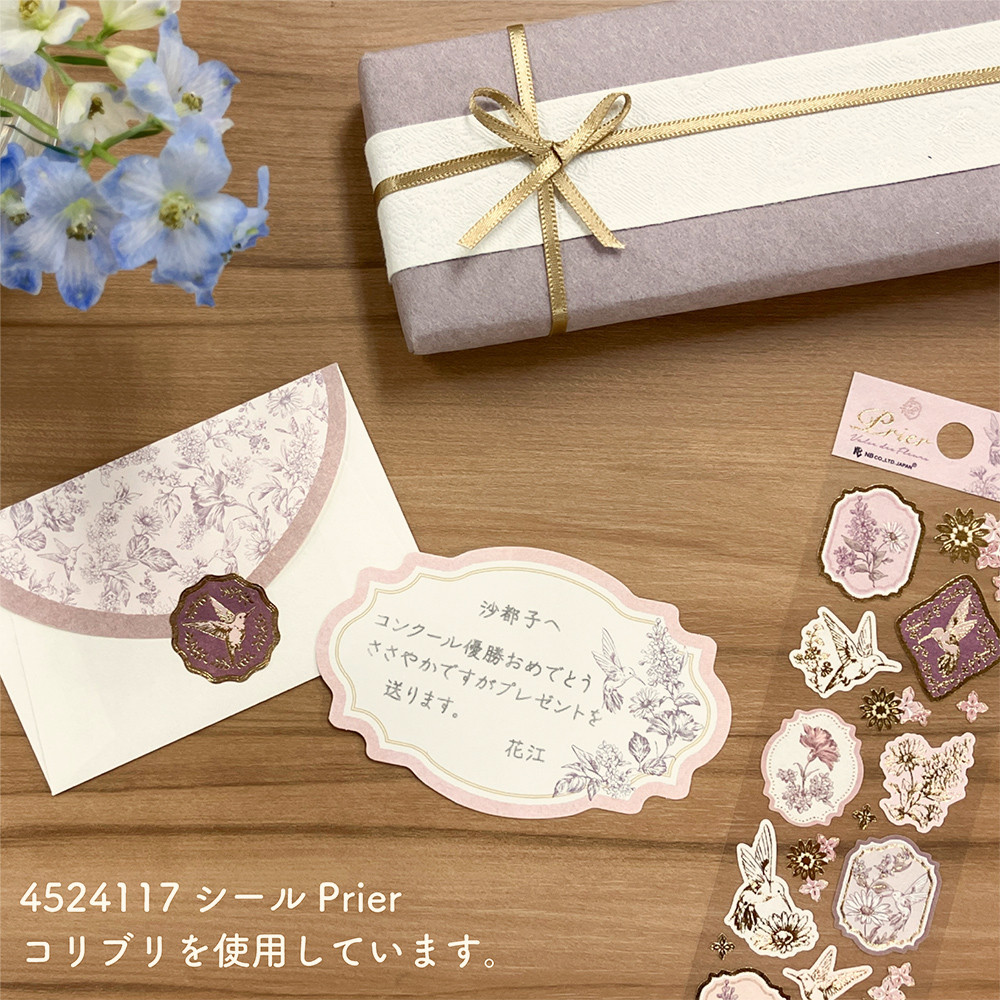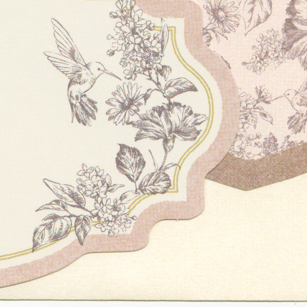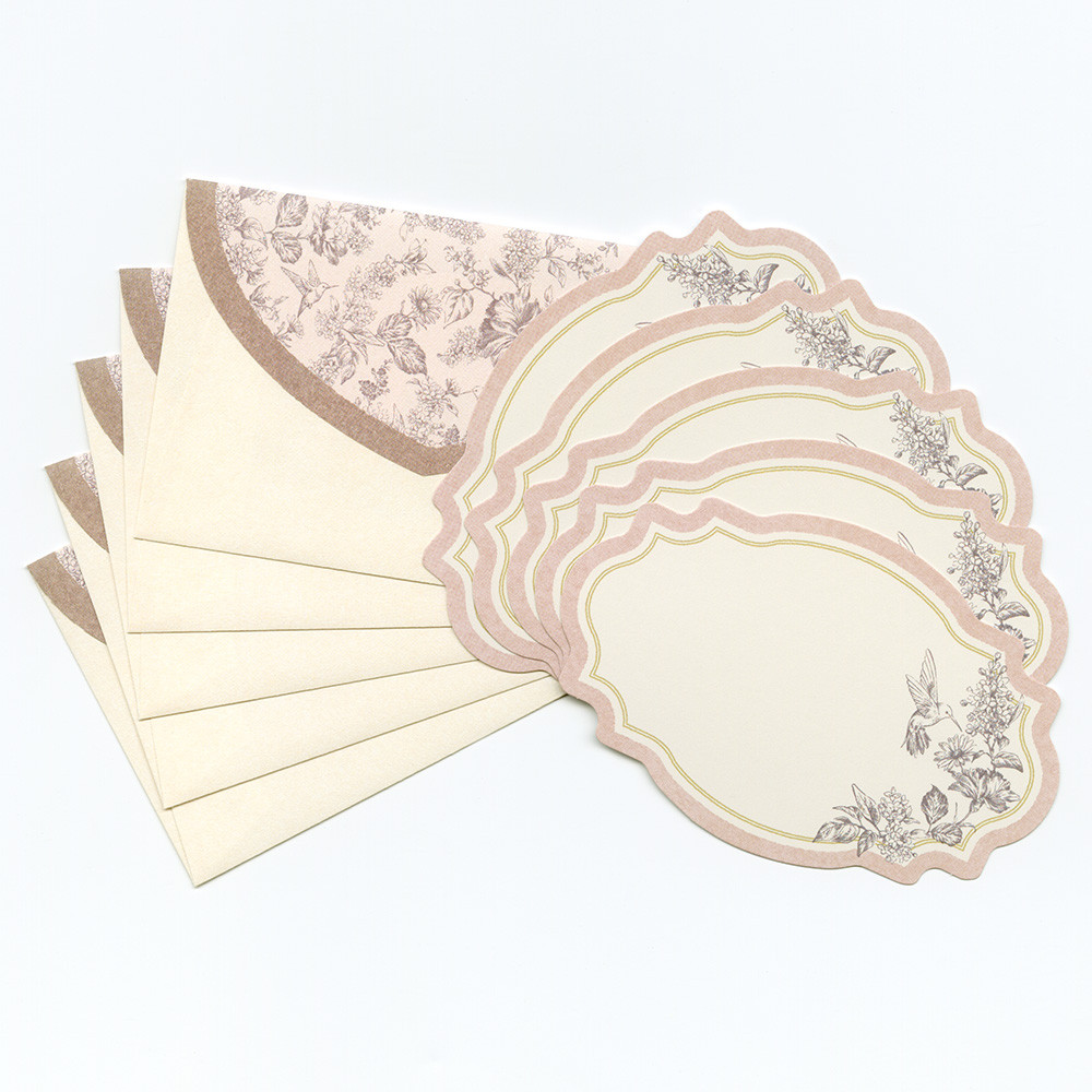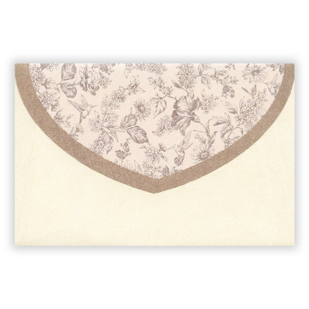 エレガントな形に切り抜いたカードを封筒の花柄が上品に引き立たせます。