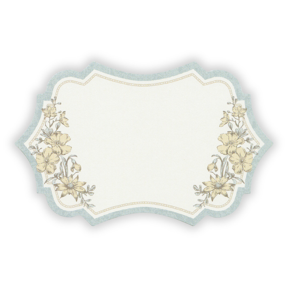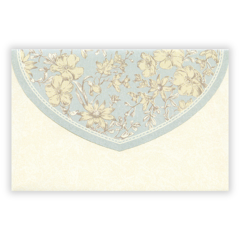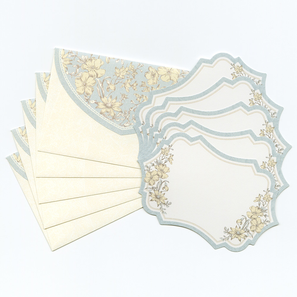 エレガントな形に切り抜いたカードを封筒の花柄が華やかに引き立たせます。