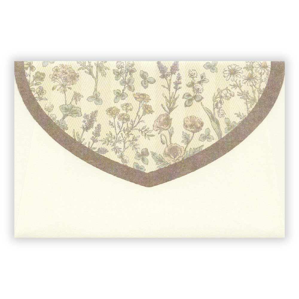 柔らかい波型に切り抜いたカードを封筒の花柄が華やかに引き立たせます。