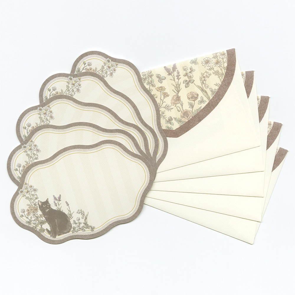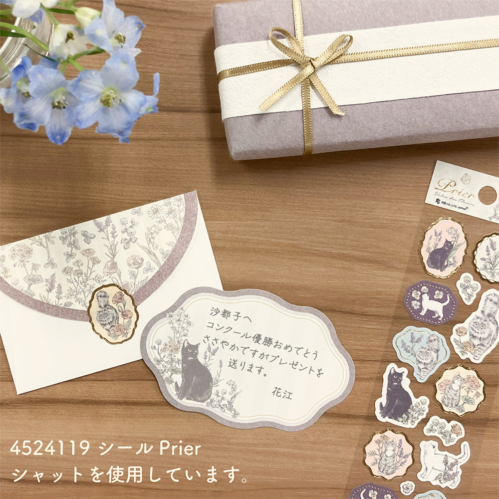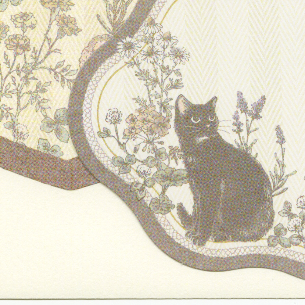 可愛らしい猫達と、四季折々の花をクラシカルで繊細なタッチで描いた封筒付きメッセージカードです。