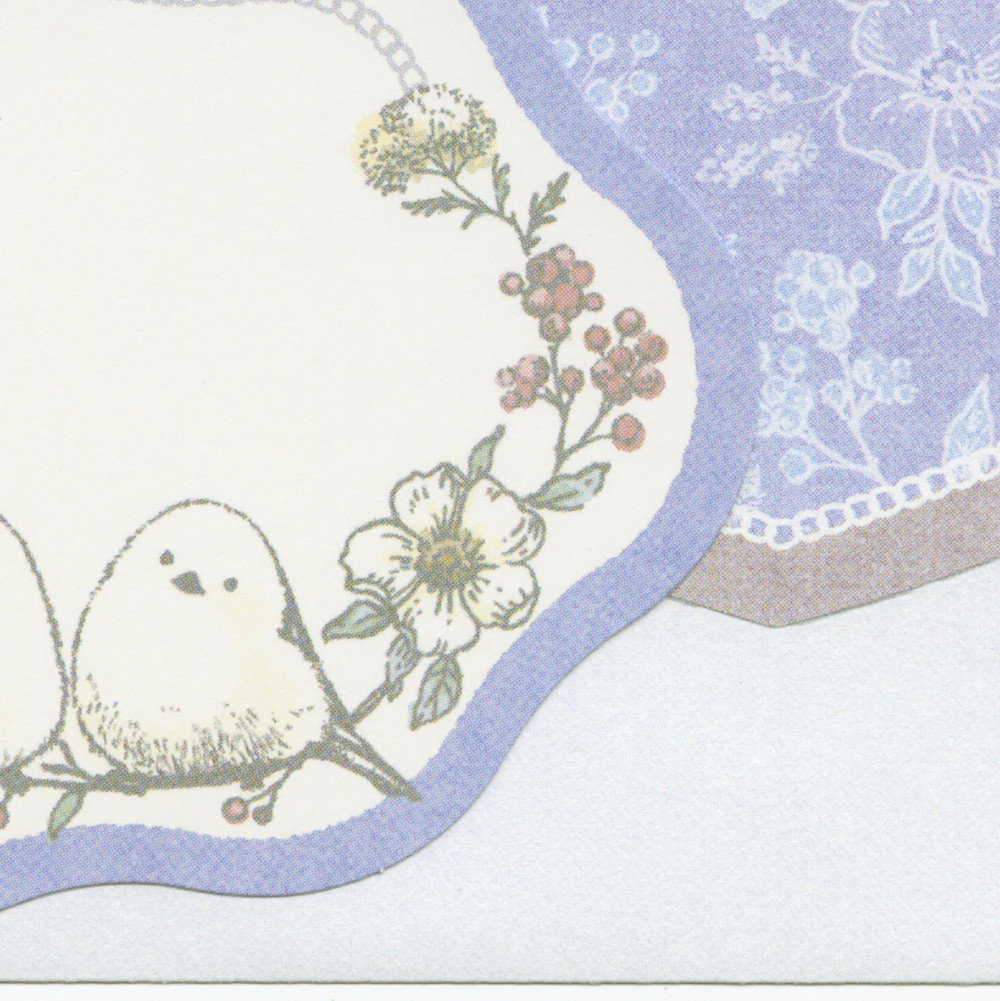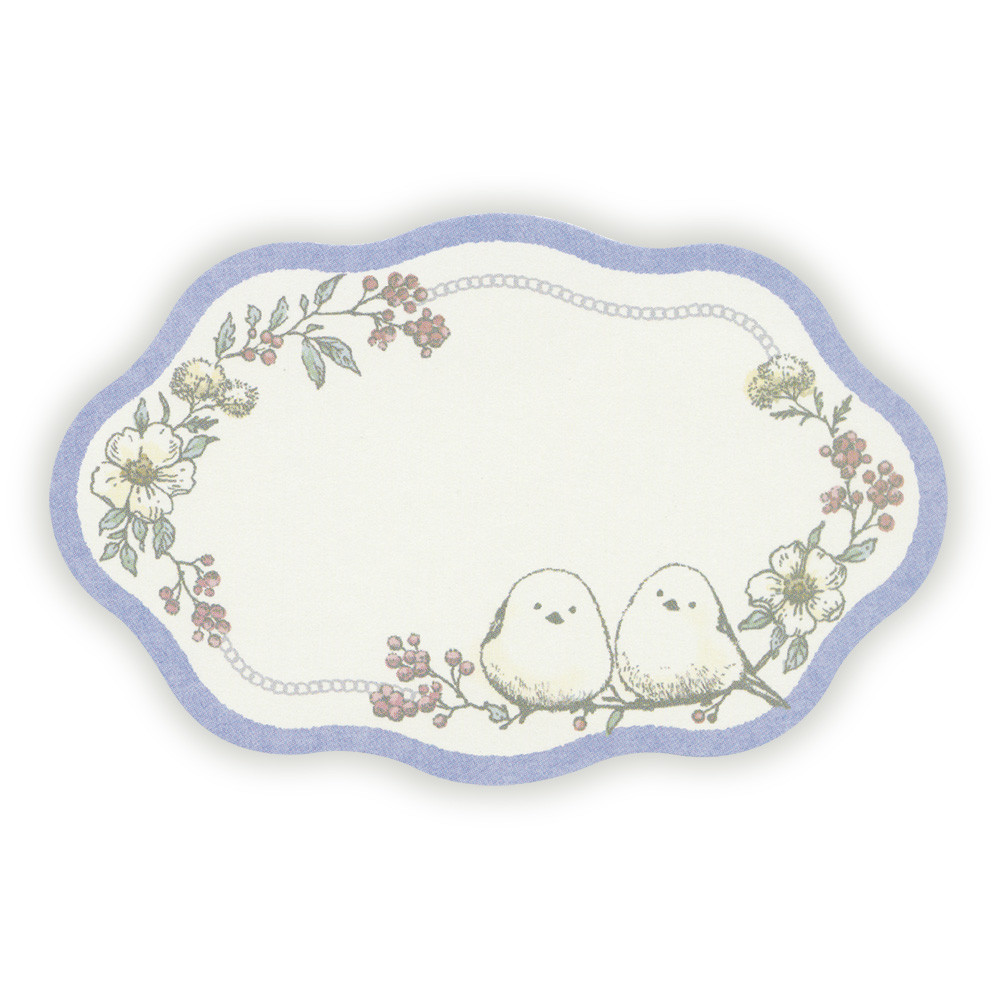 シマエナガと小花柄をクラシカルで繊細なタッチで描いた可愛らしい封筒付きメッセージカードです。