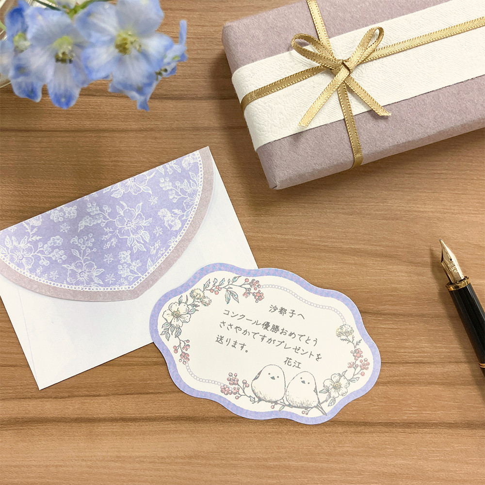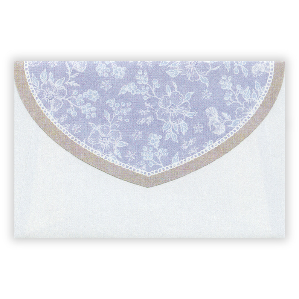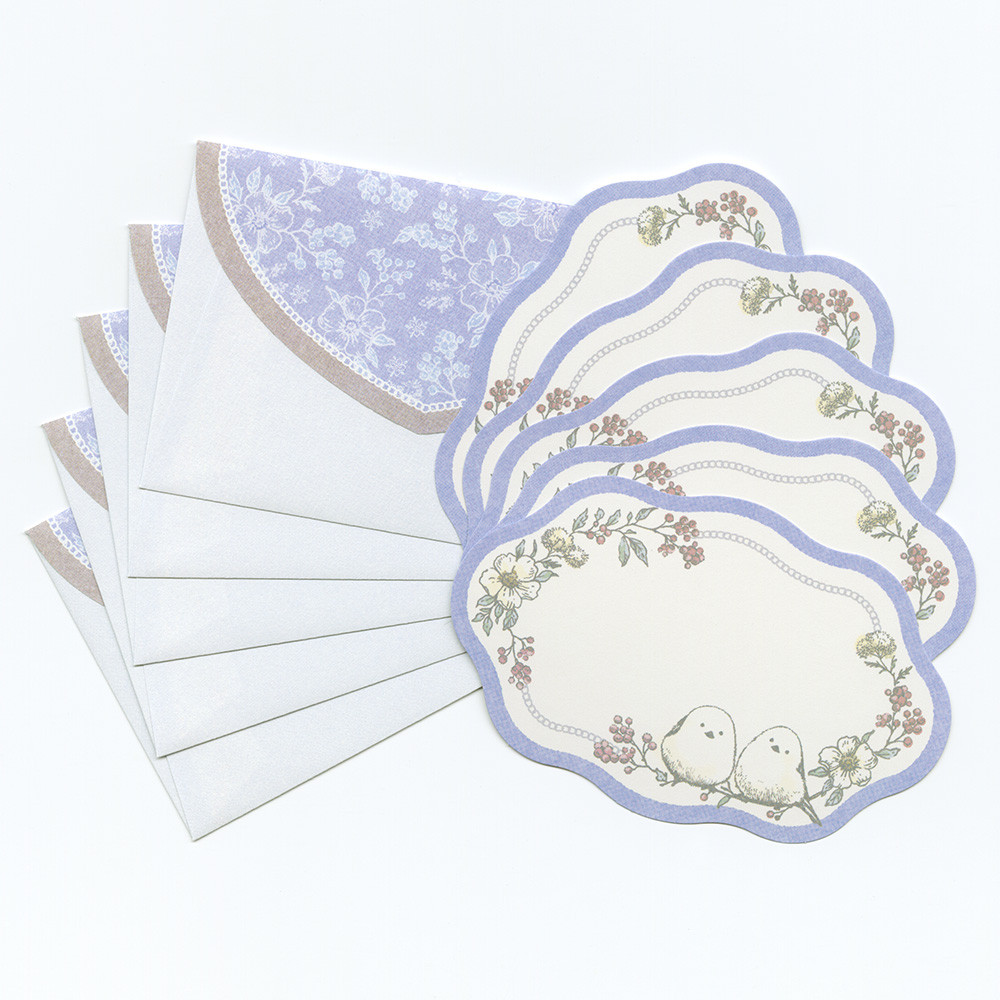 柔らかい波型に切り抜いたカードを封筒の花柄が可憐に引き立たせます。