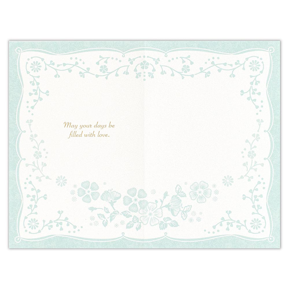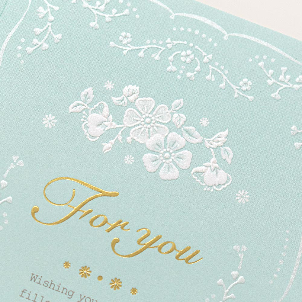 柔らかく輝くミントカラーの花々をあしらった上品な多目的カードです。