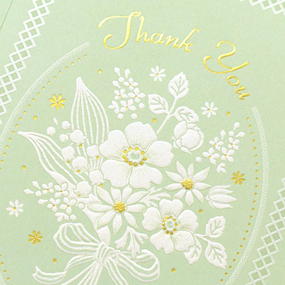 爽やかなグリーンの色味でまとめた上品なお礼カードです。