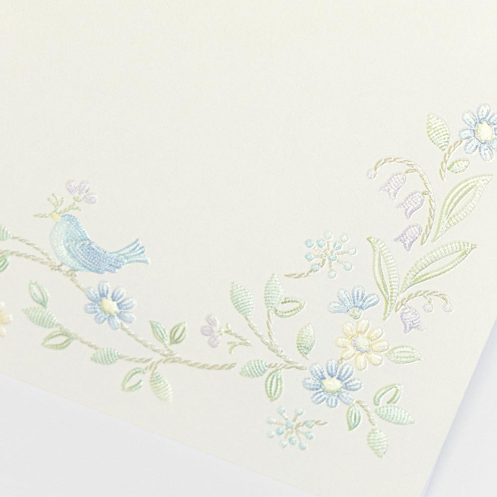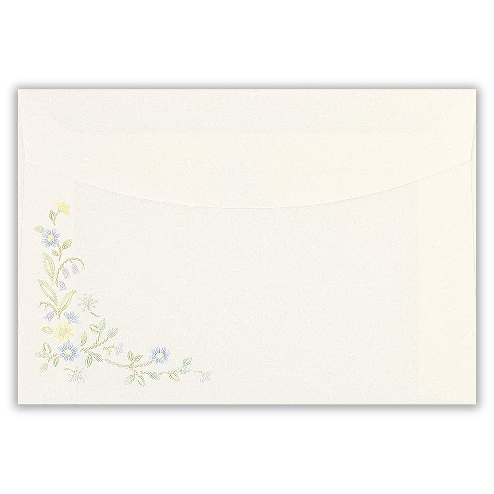 『幸せ』を意味する青い小鳥とブルーデイジーが可愛らしい封筒です。