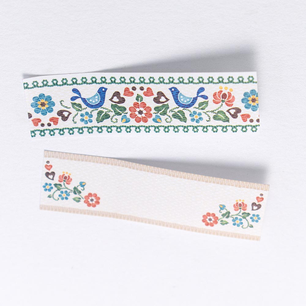 刺繍風の小鳥や色鮮やかな小花のリボン柄がデスク周りやノートなどを彩ります。