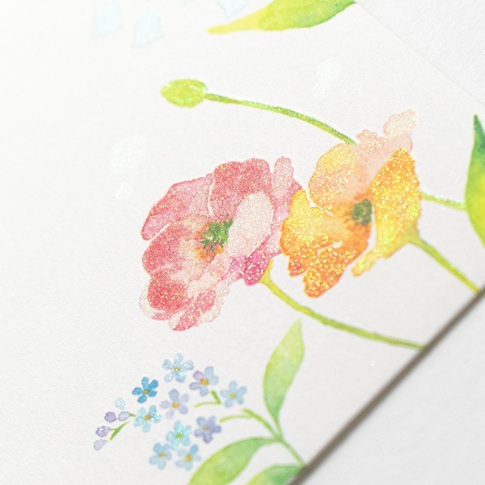 優しく暖かな春の花々がクリスタルラメで上品に輝く封筒です。