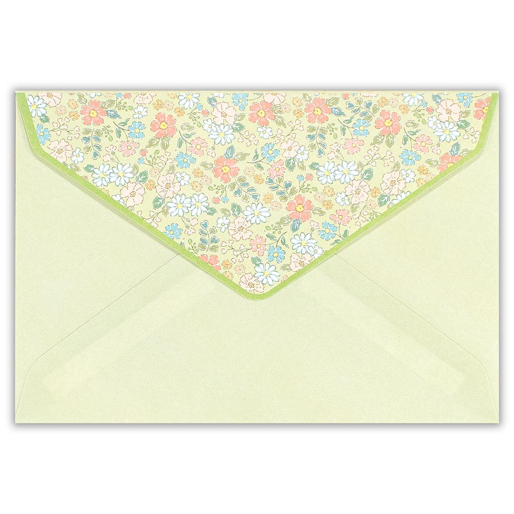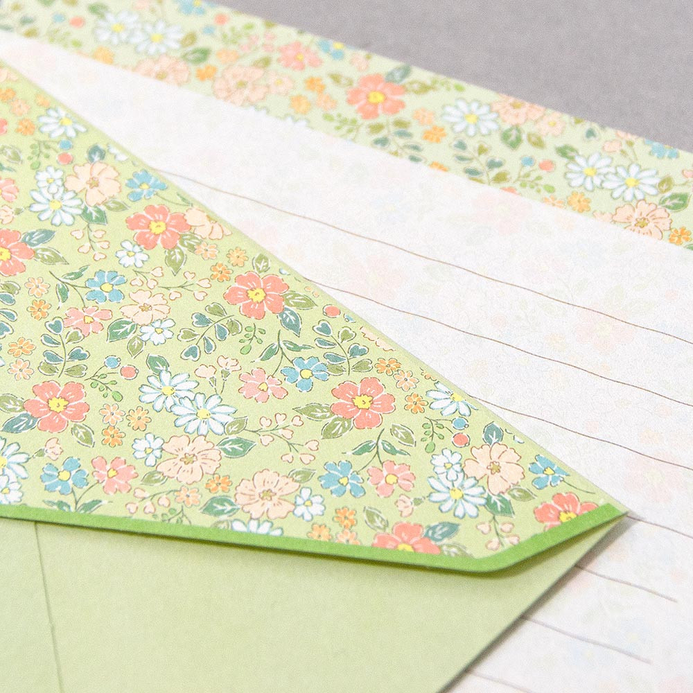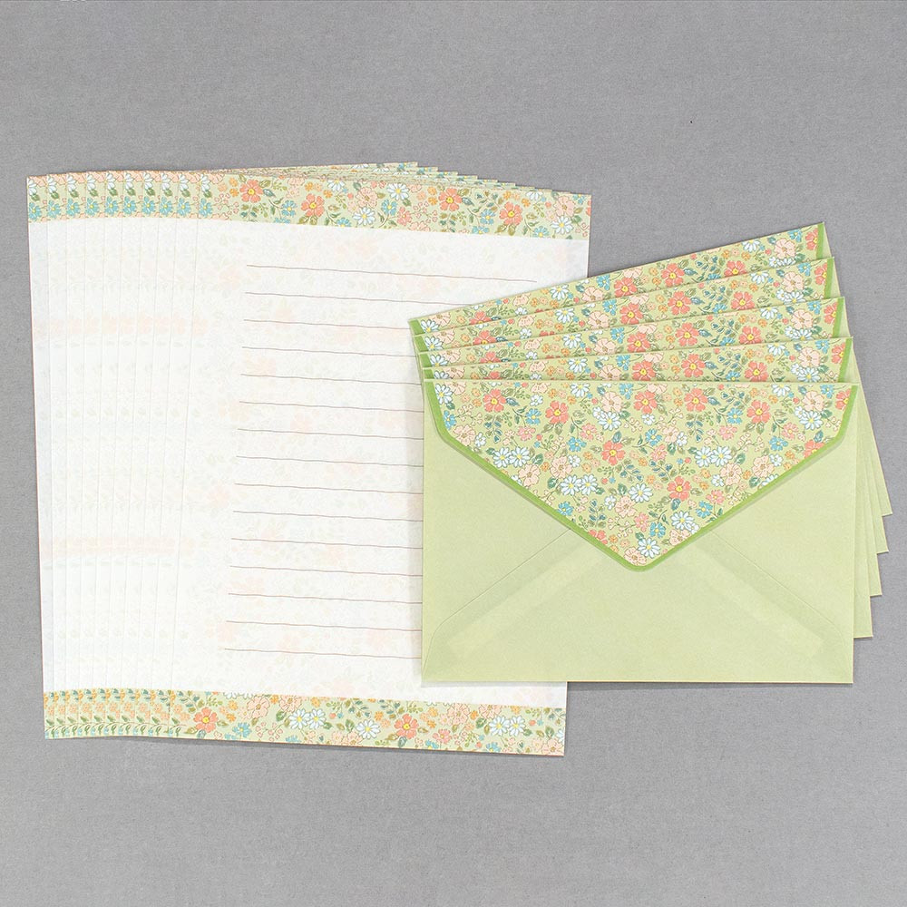 さりげなく咲く花のように寄り添い、笑顔にしてくれる、大人の小花柄シリーズ。使いやすいA5サイズ相当のレターセットです。風合いのある和紙を使用しています。