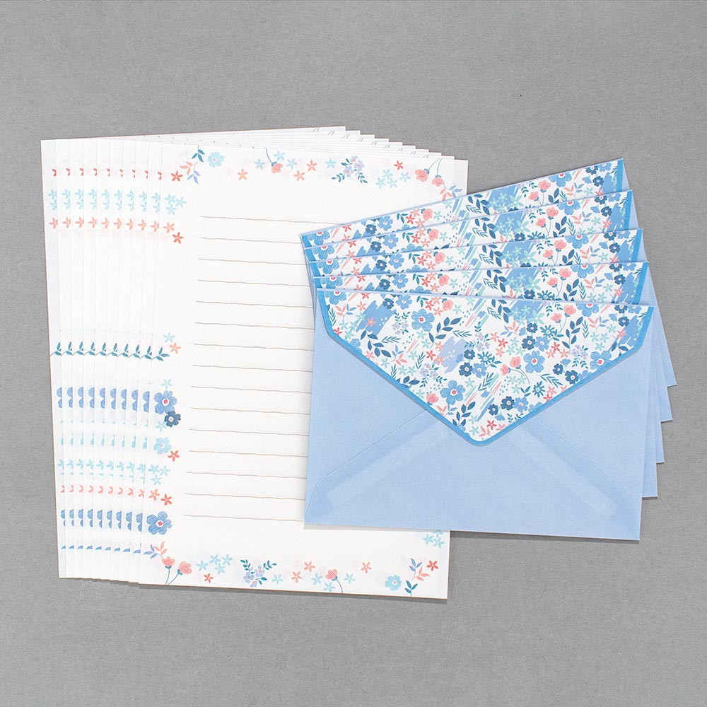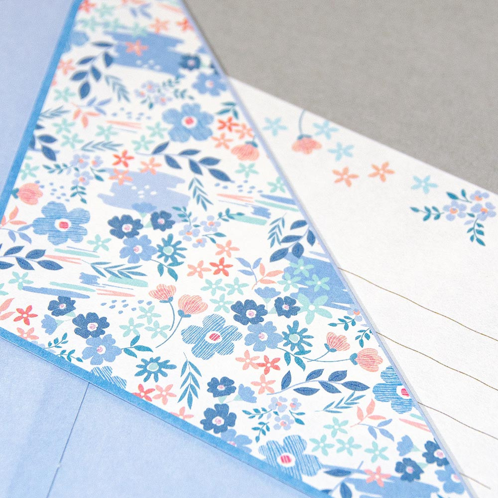 さりげなく咲く花のように寄り添い、笑顔にしてくれる、大人の小花柄シリーズ。使いやすいA5サイズ相当のレターセットです。風合いのある和紙を使用しています。