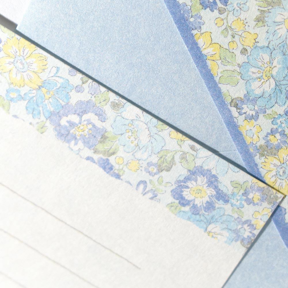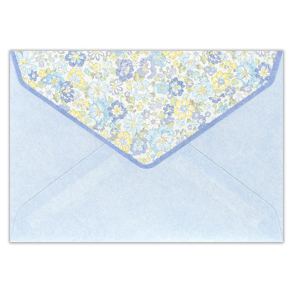 ブルー系×イエローの色合いと、小さく散らした花々が優しく可愛らしい印象です。