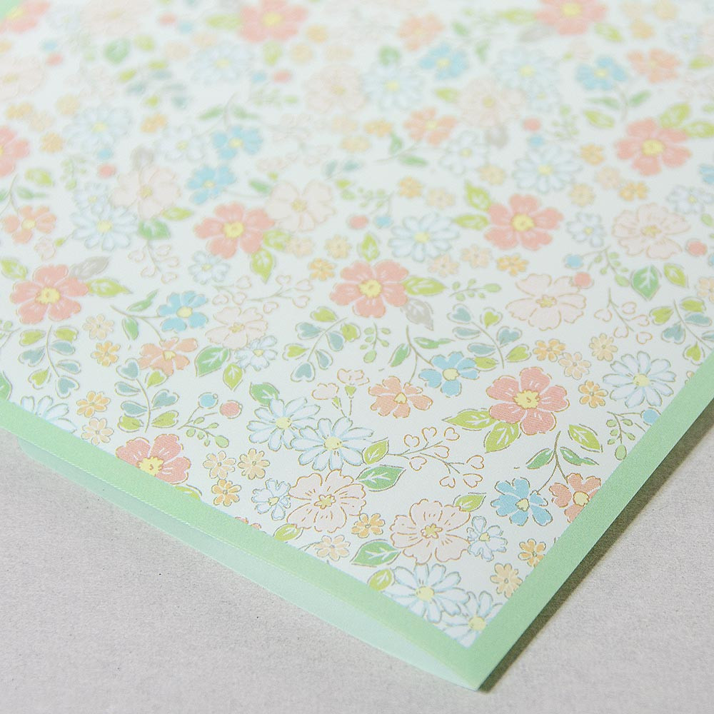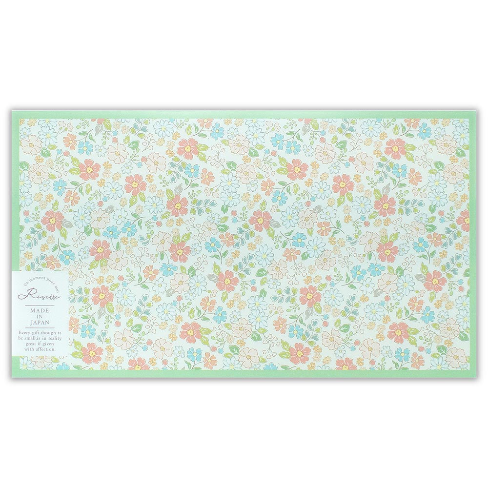 グリーンベースにピンクと水色の花々が、ナチュラルで優しい印象です。