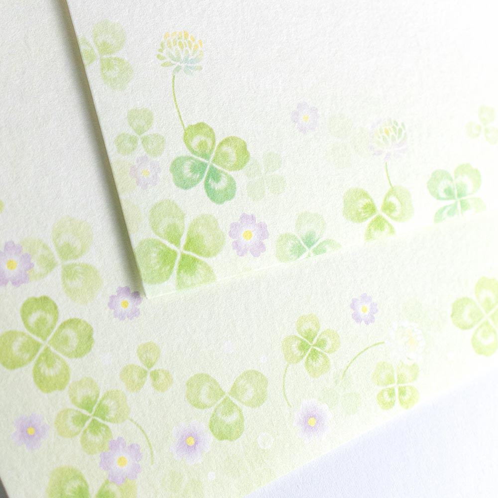 幸運のシンボルである四葉のクローバーをモチーフにした一年を通してお使いいただけるデザインです。