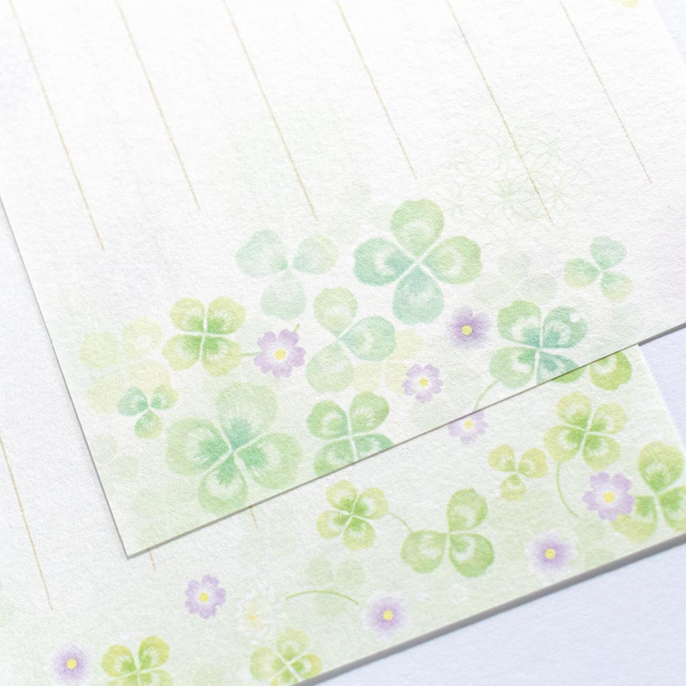 幸運のシンボルである四葉のクローバーをモチーフにした一年を通してお使いいただけるデザインです。
