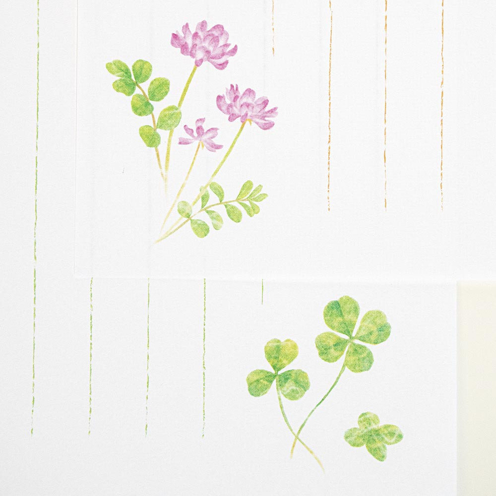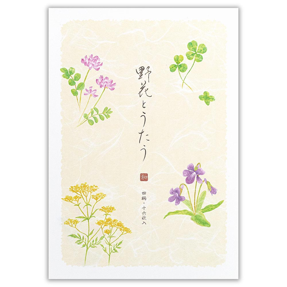 野原の花をあしらった、通年お使いいただける4柄アソートの便箋です。使いやすいぴったりA5サイズです。