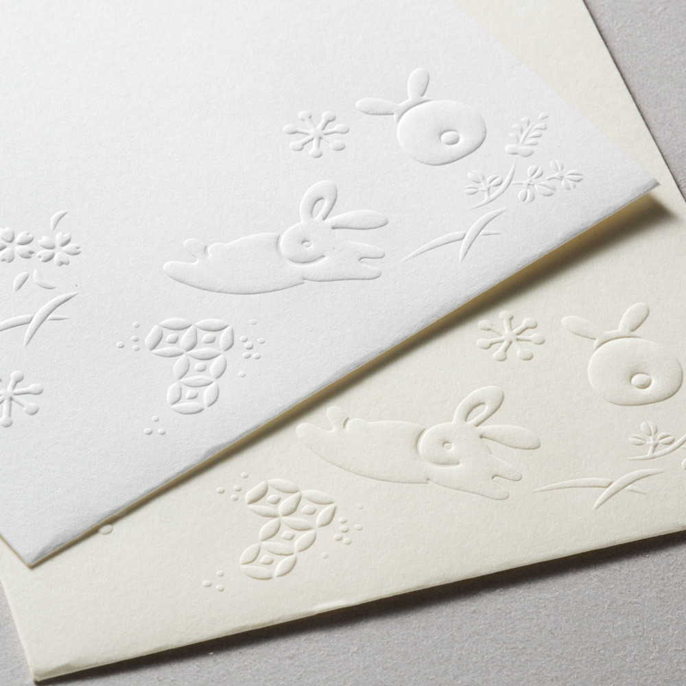 立体感のあるエンボス加工の可愛いうさぎの模様が入った、2色アソートの封筒です。