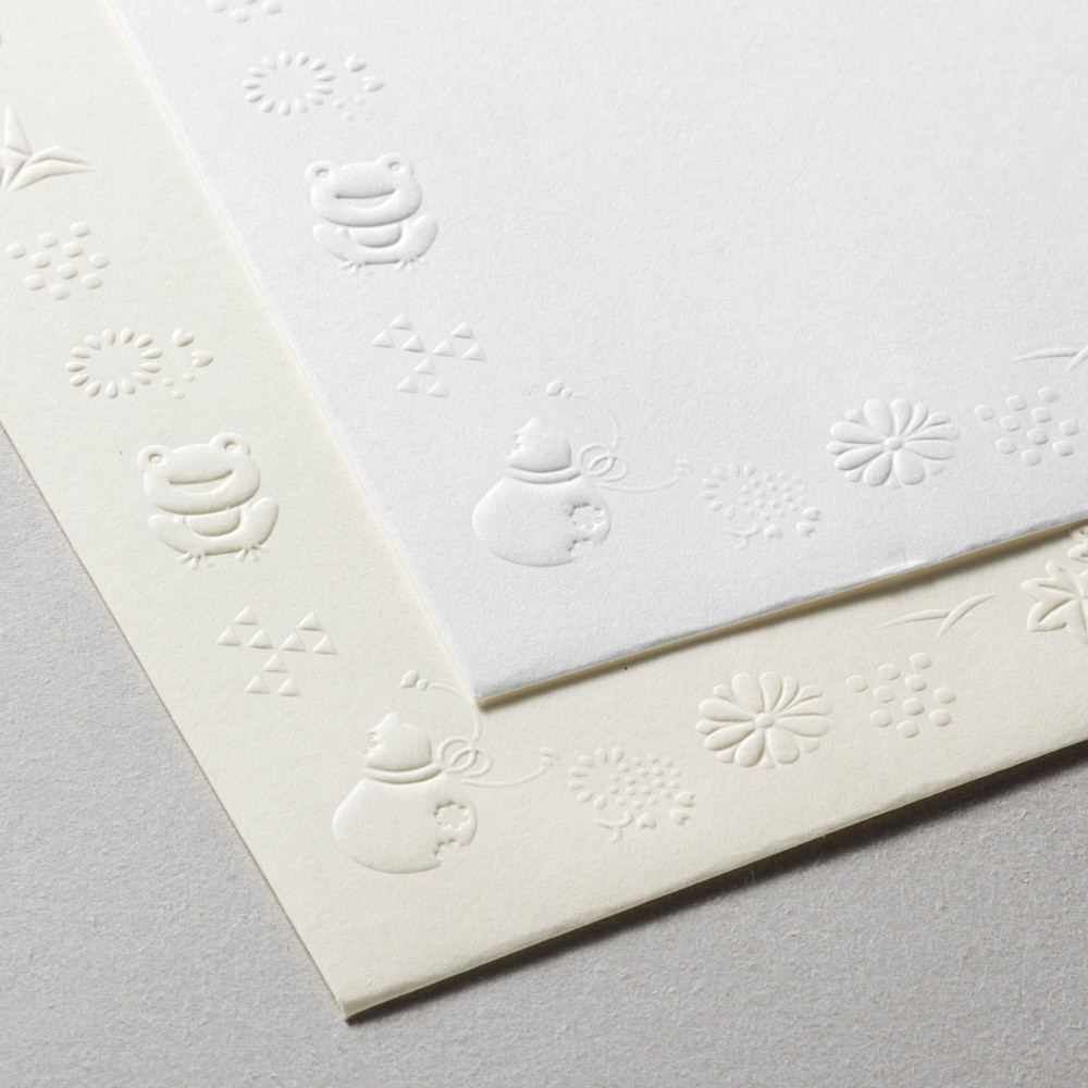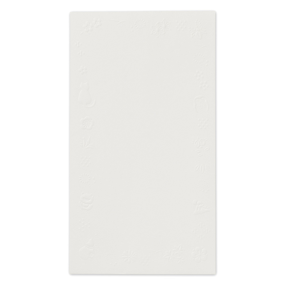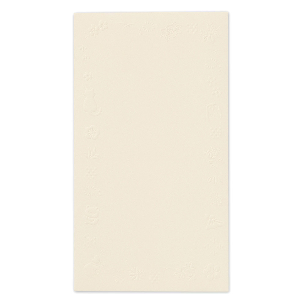 立体感のあるエンボス加工の、動物や花の模様が入った2色アソートの封筒です。