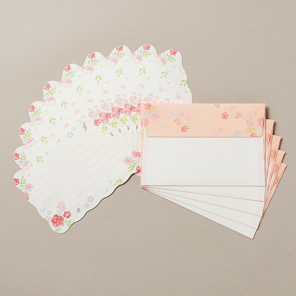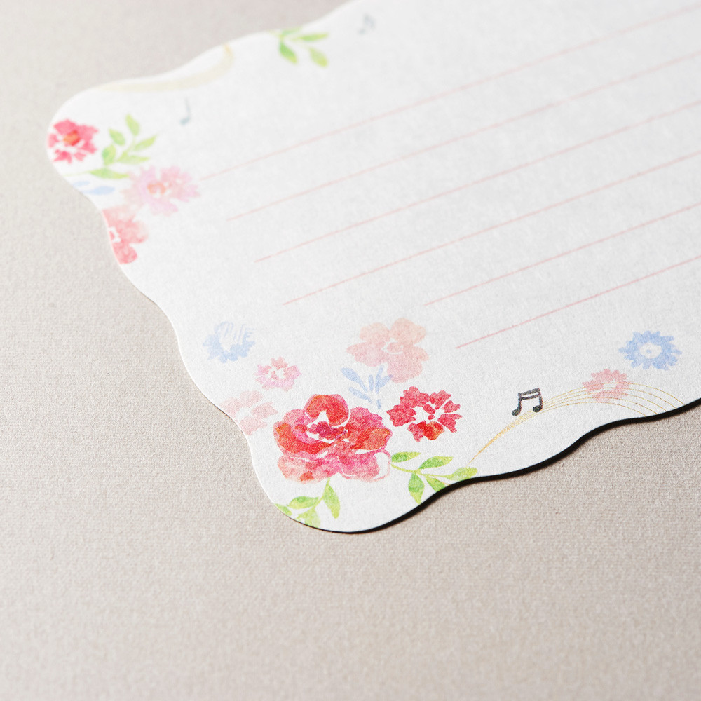 大人っぽく華やかな絵柄と、軽やかな波形のダイカットが特徴のレターセットです。