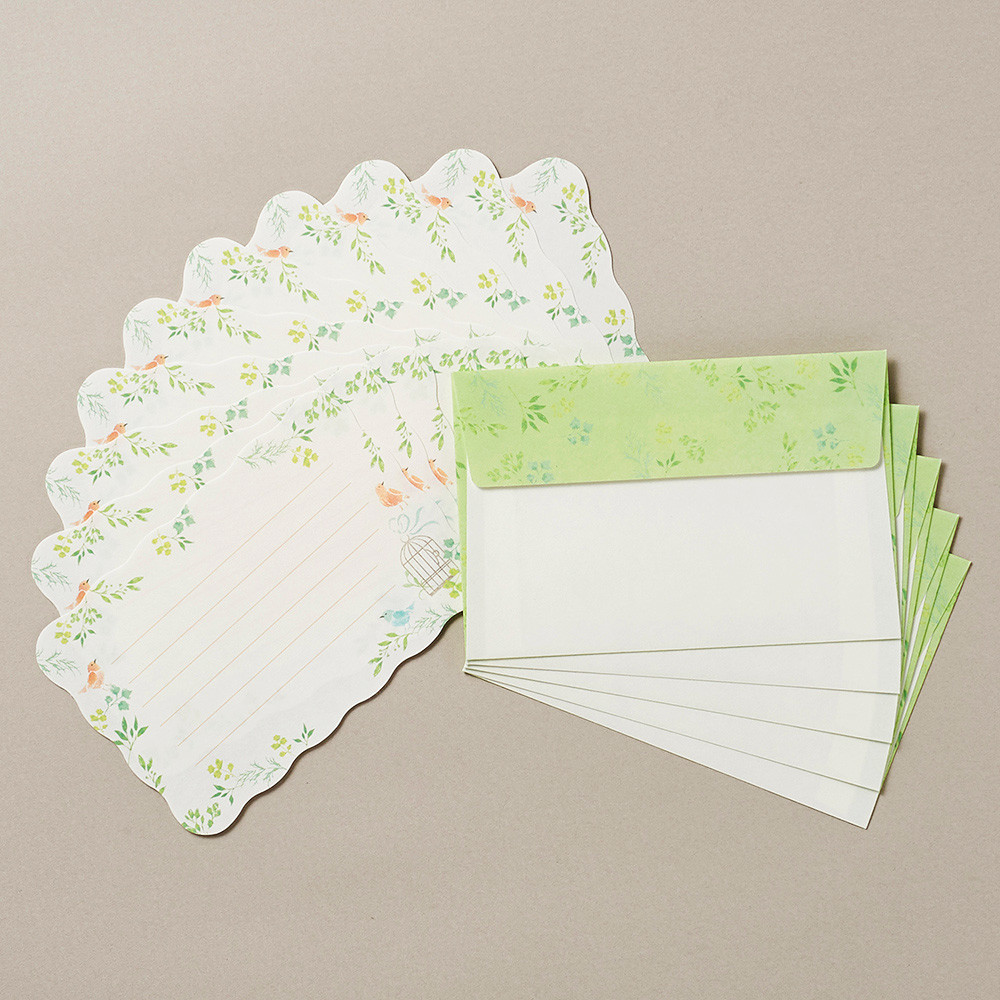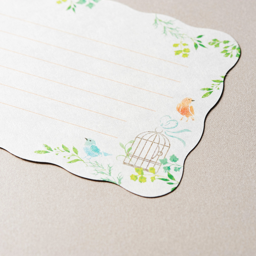 大人っぽく華やかな絵柄と、軽やかな波形のダイカットが特徴のレターセットです。