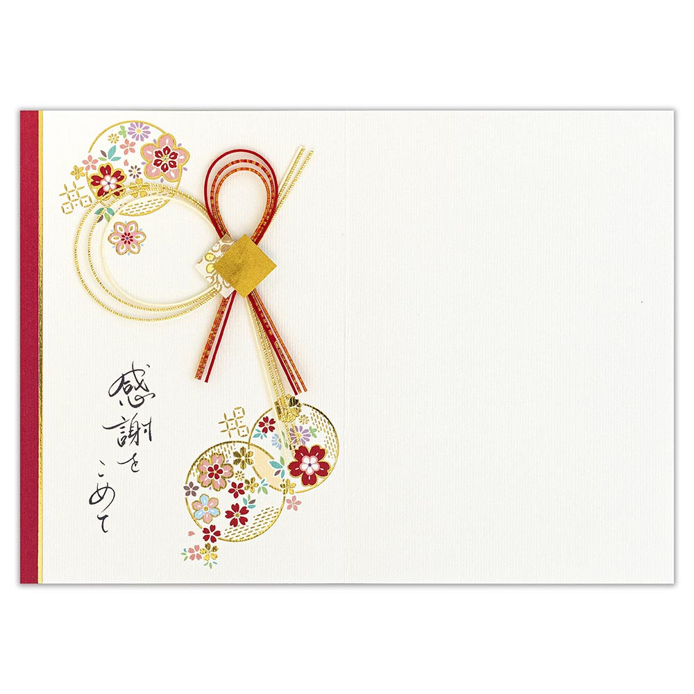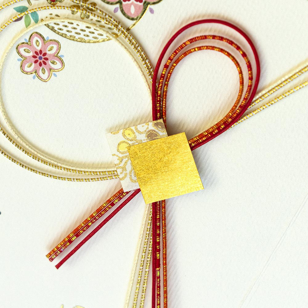 華やかな水引飾りと金箔押し加工が目を引く、和風のお礼のカードです。幅広いシーンでお使いいただけます。