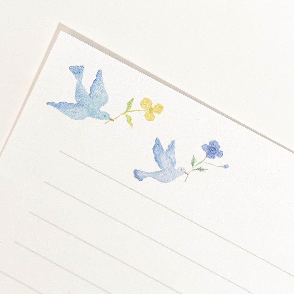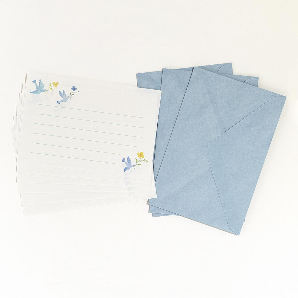 青い鳥が爽やかな和紙レターセット。心が弾む、手触りのいい和紙を使用。友人や家族、仲の良い同僚に贈るなど、カジュアルなシーンで使えます。