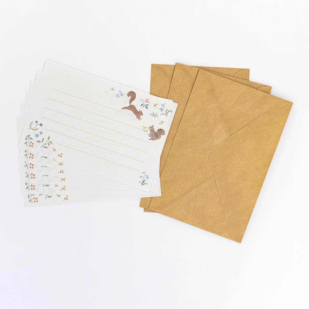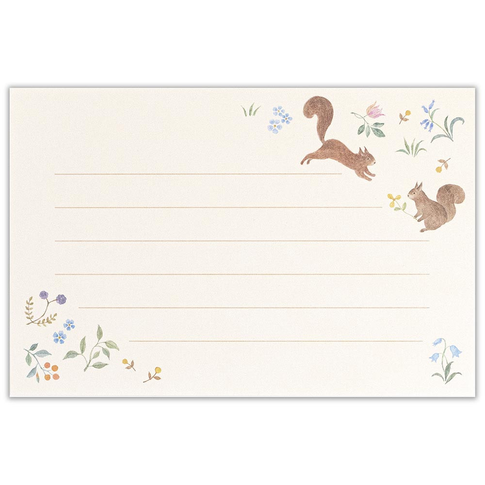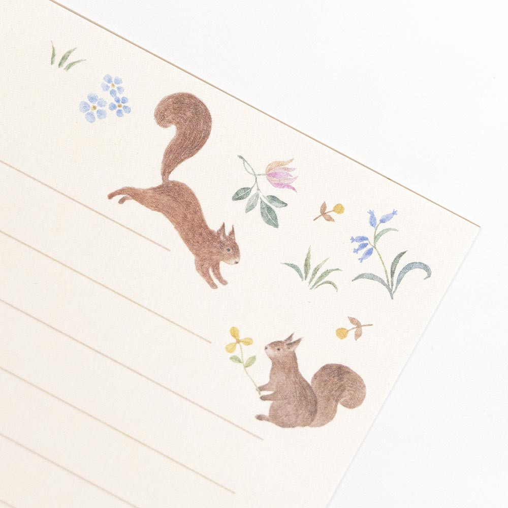 リスと小花柄をモチーフにした和紙レターセット。心が弾む、手触りのいい和紙を使用。友人や家族、仲の良い同僚に贈るなど、カジュアルなシーンで使えます。