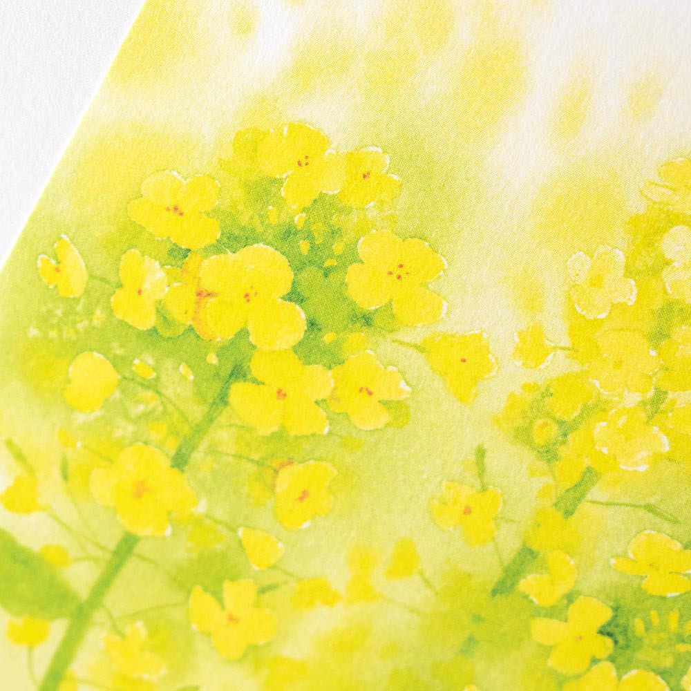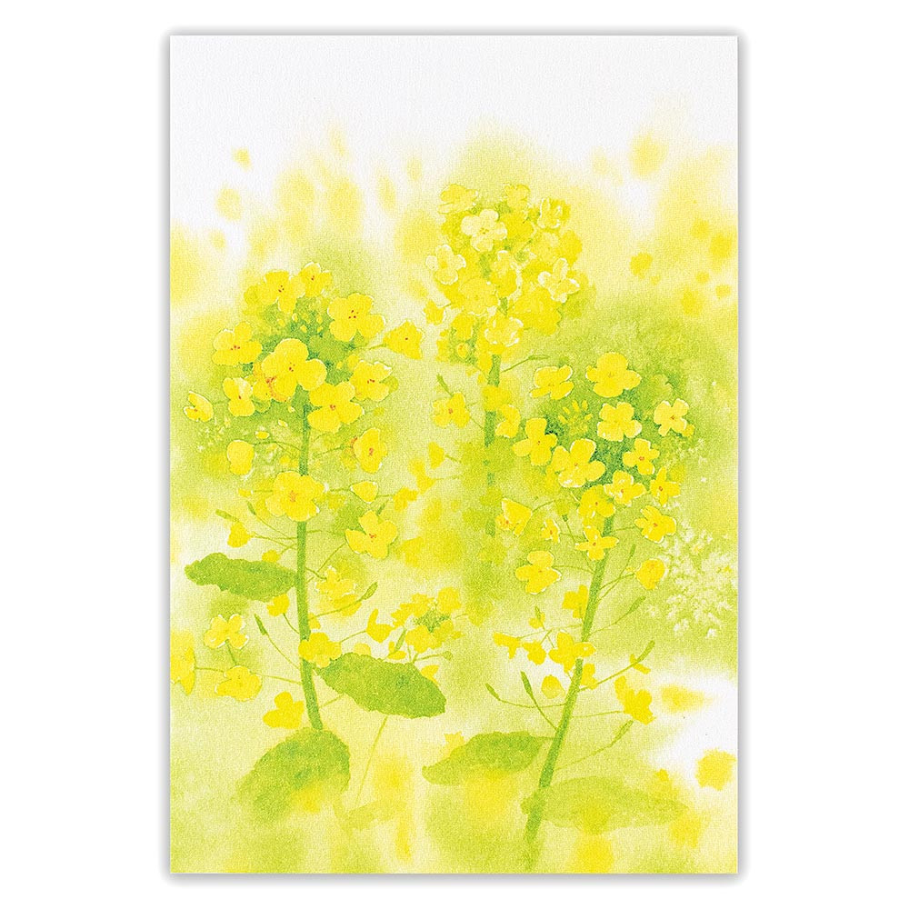 菜の花を繊細な描写と絵具のにじみを活かして描いたデザインです。