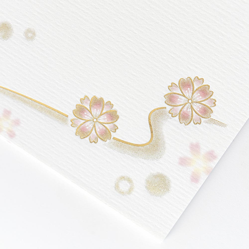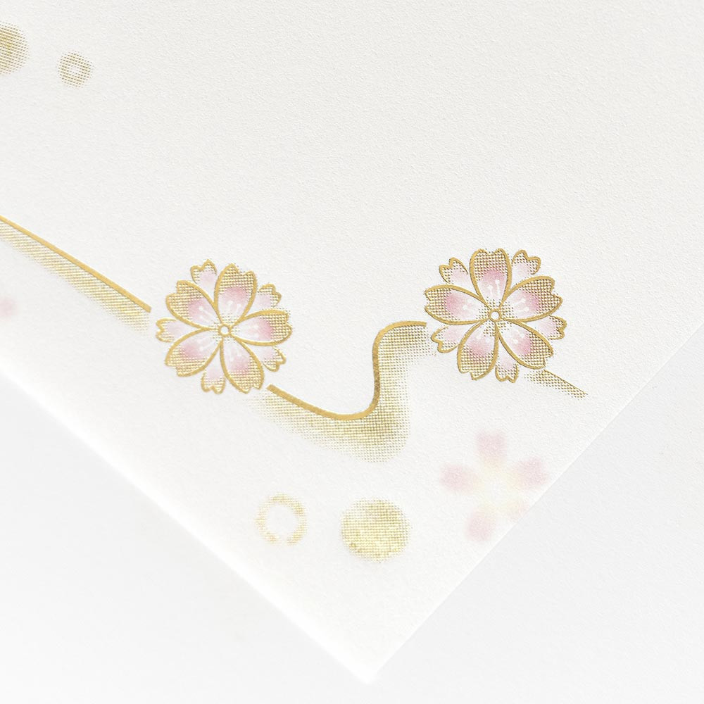 こだわりの点描金箔押し加工が印象的な和紙便箋です。 点描金箔押し加工と蒔絵の桜をイメージしたデザインに気品が感じられます。