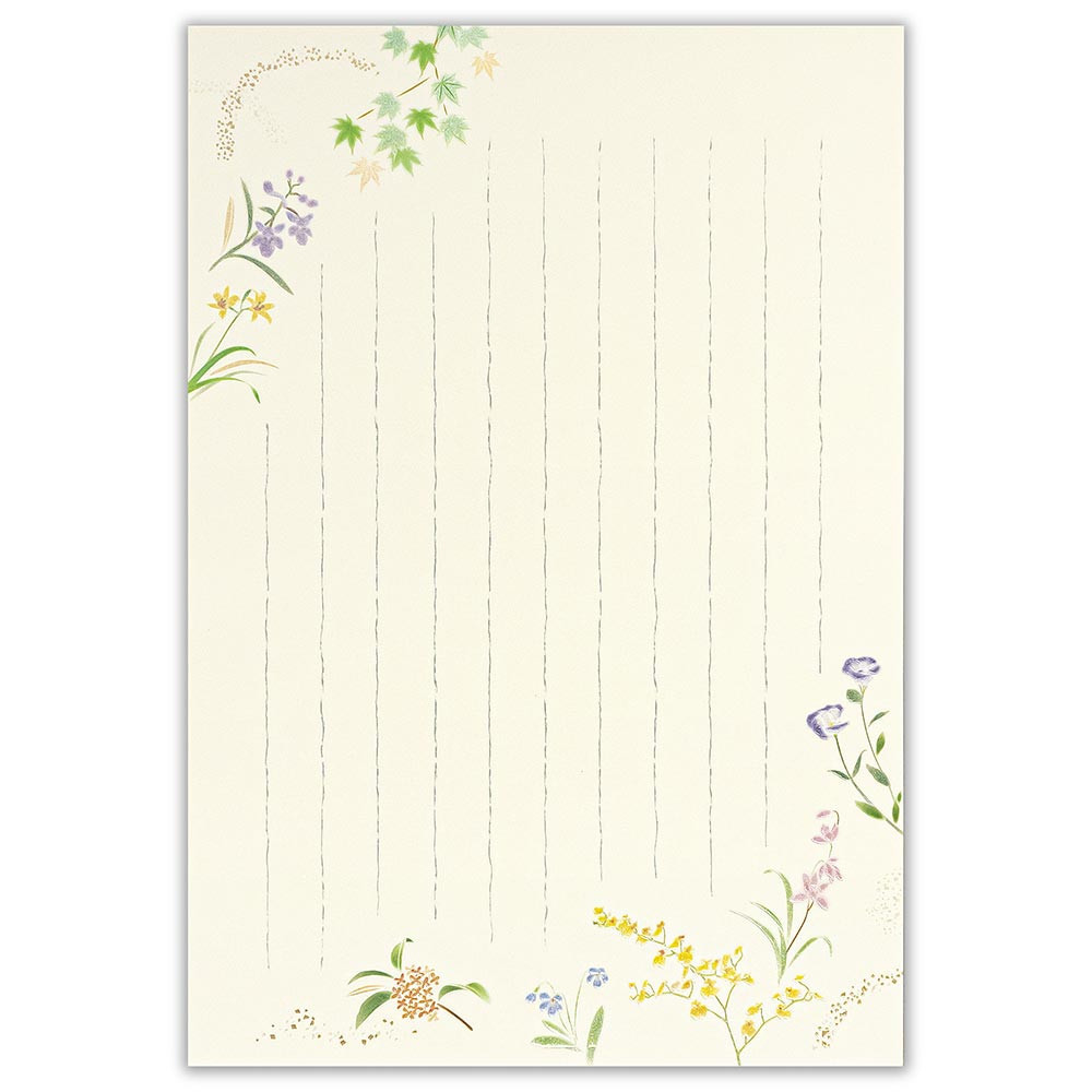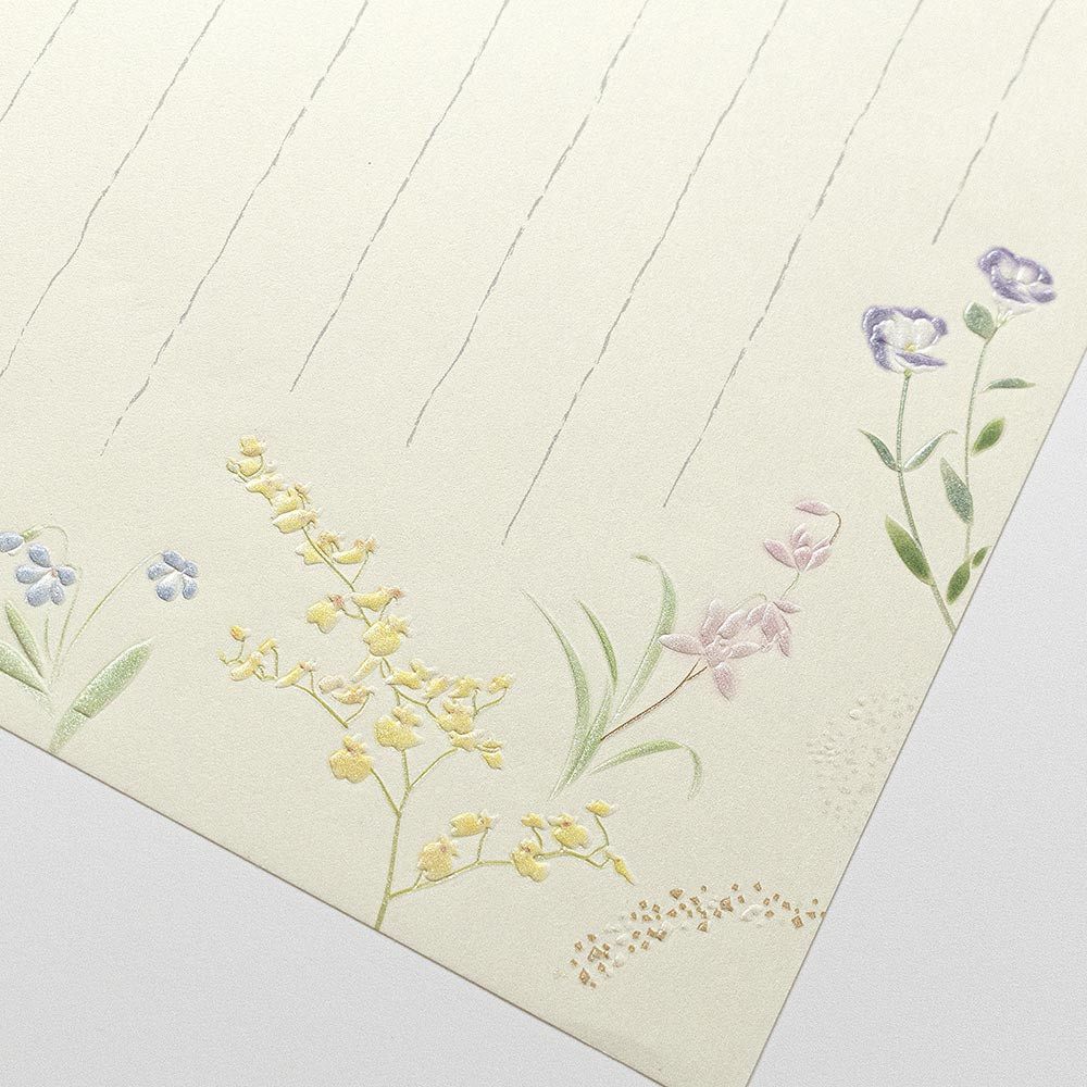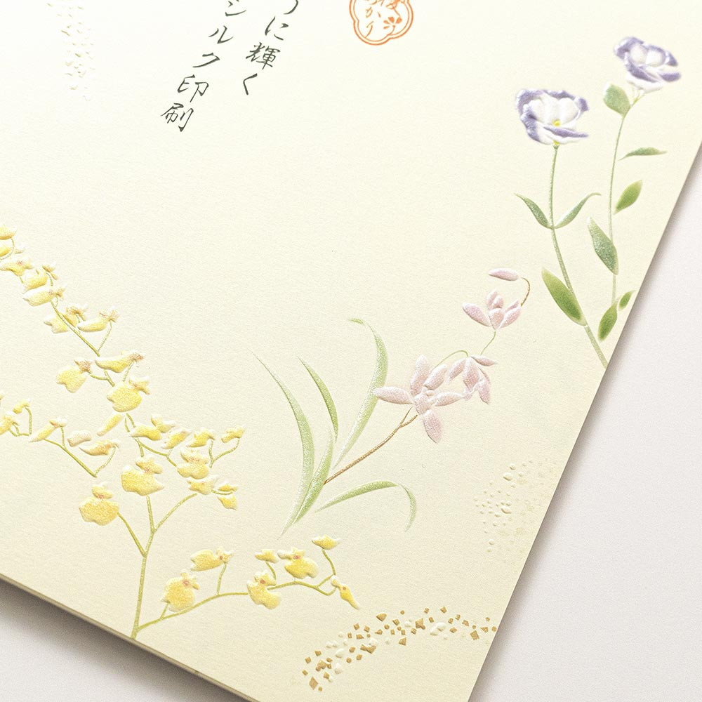 立体感のあるエンボス加工の花々のイラストが入った和紙便箋です。