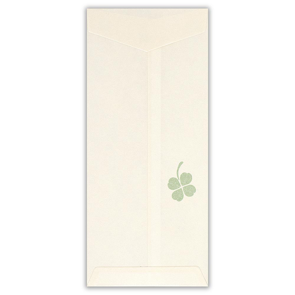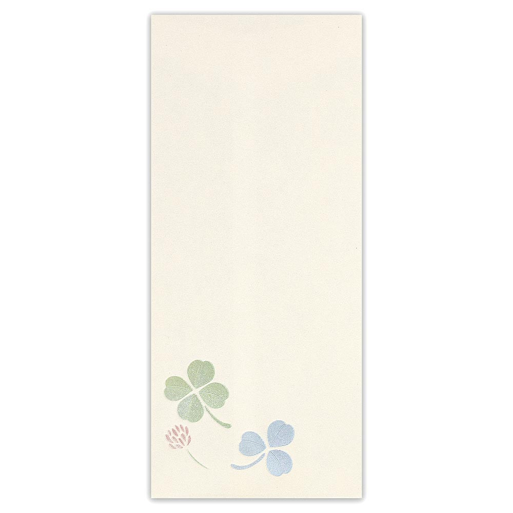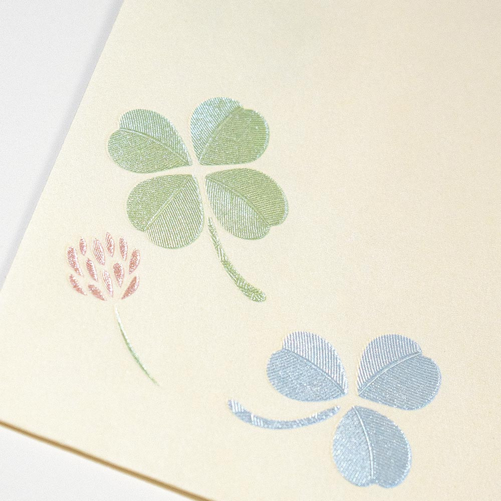 奥行き感のあるデボス加工の四葉のイラストが入った和紙封筒です。 可愛らしい和風のクローバーの絵が宛名を引き立てます。