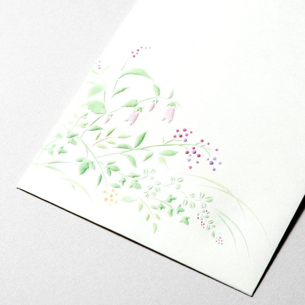 立体感のあるエンボス加工の野の花のイラストが入った和紙封筒です。