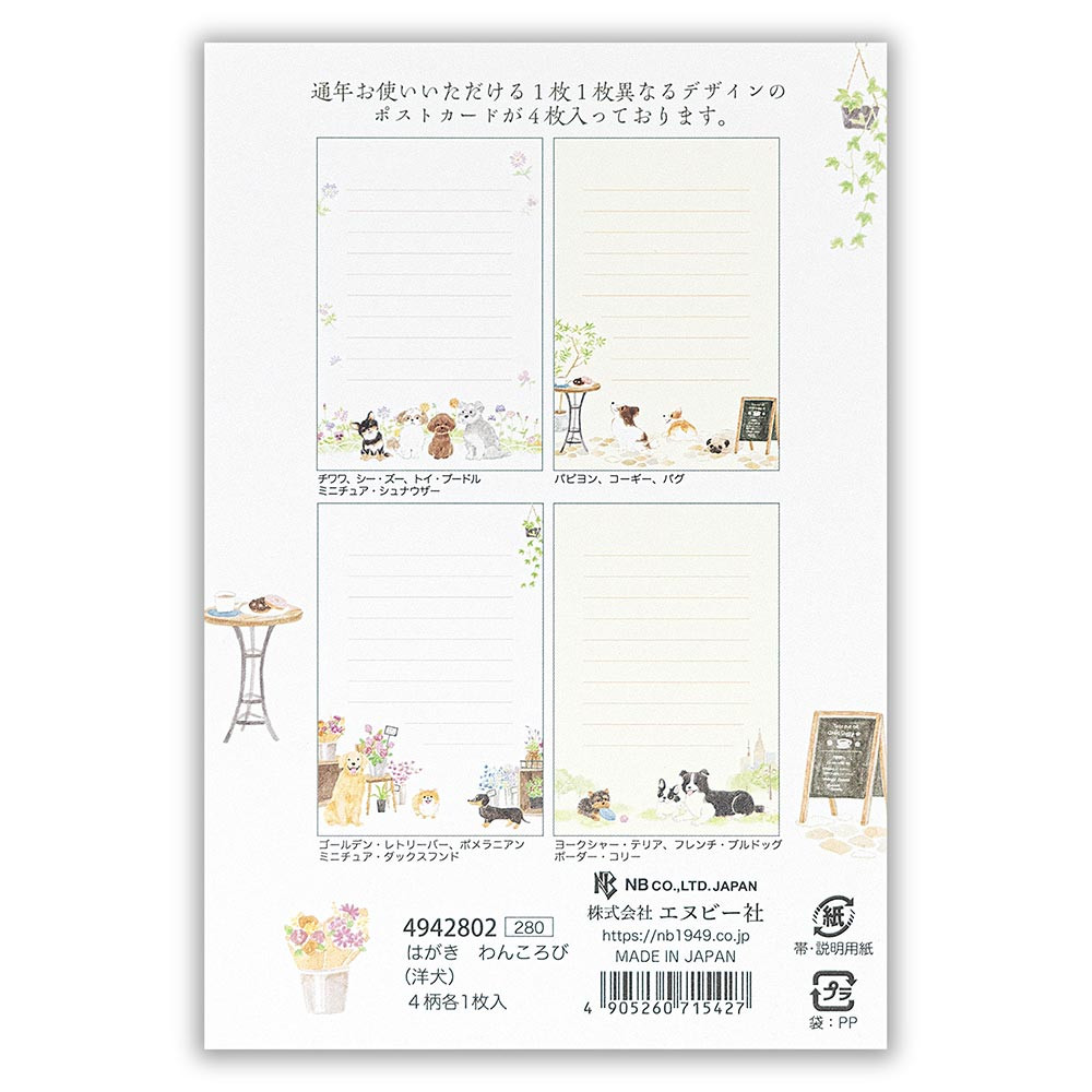 4柄アソートで、たくさん楽しめるはがきです。