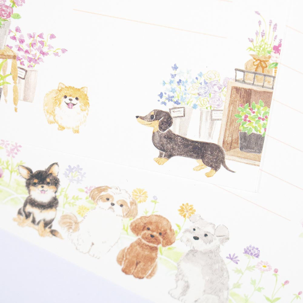 公園やカフェ、花屋といった街中で、愛犬と過ごす大切なひとときを描きました。