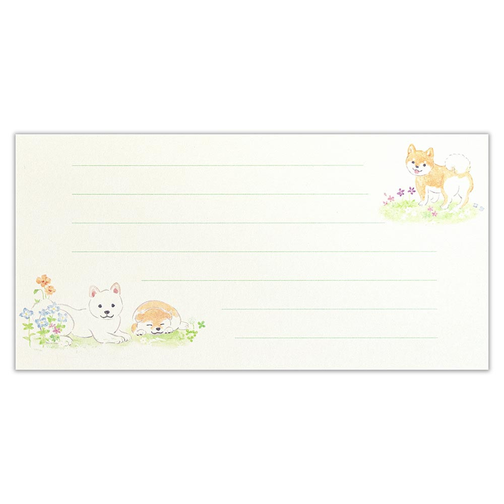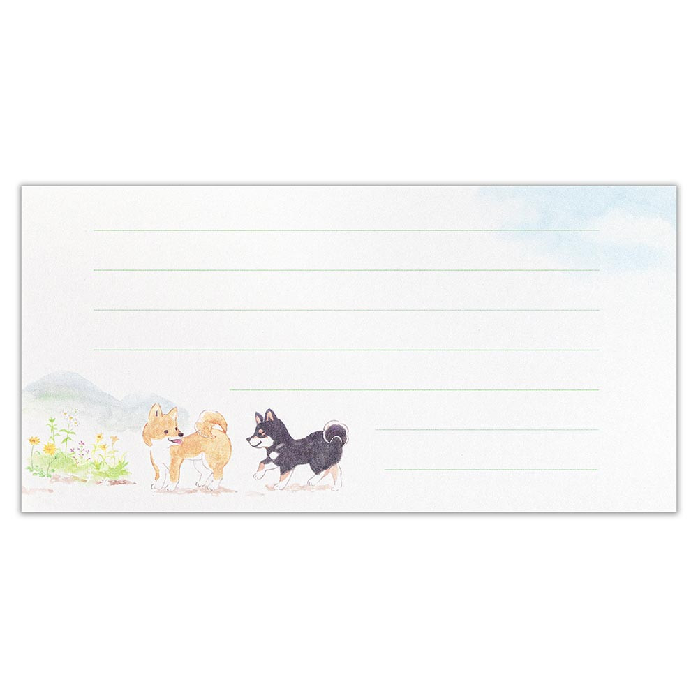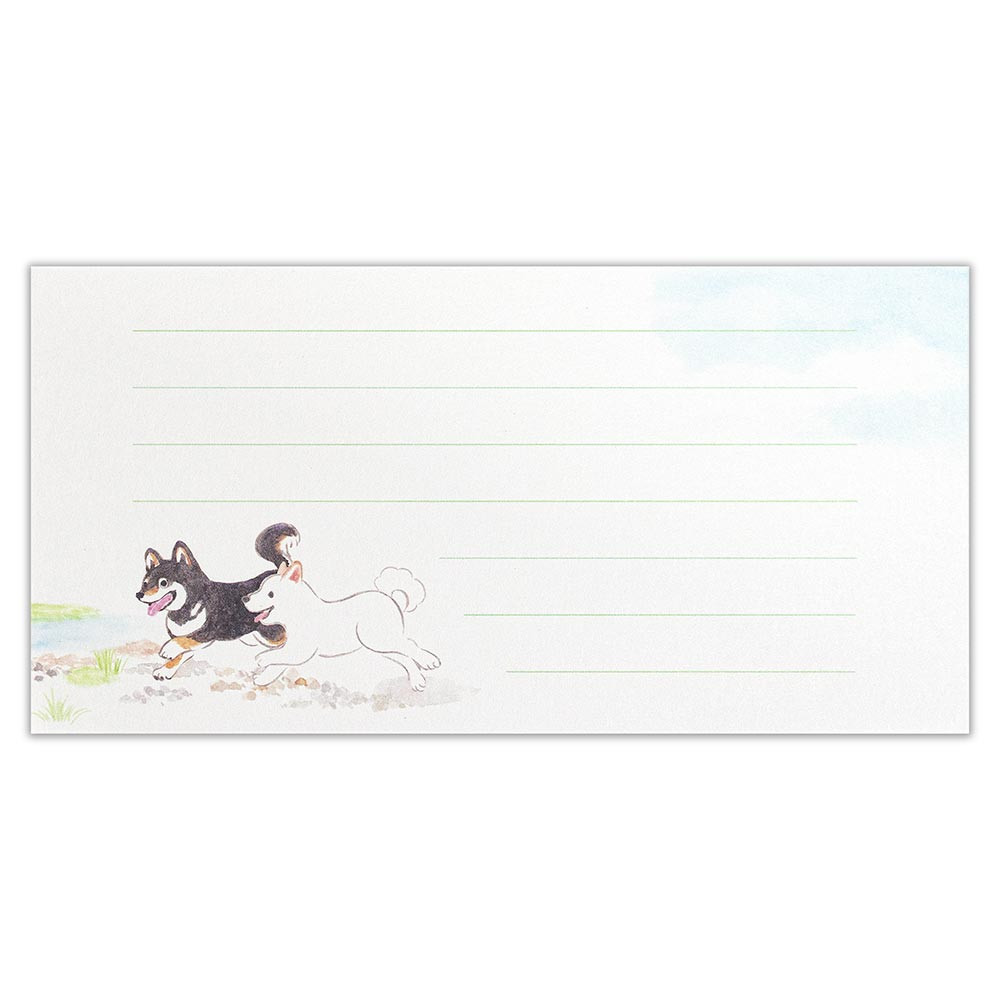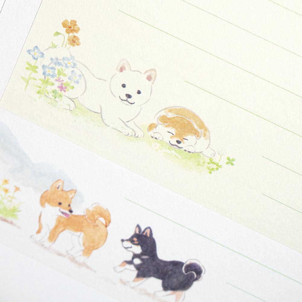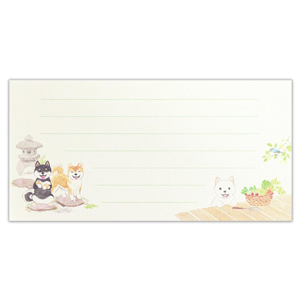 野山や小川、採れたての野菜…自然の中で柴犬たちとのびのび暮らすようすを思い描きました。 4柄アソートで、たくさん楽しめる一筆箋です。