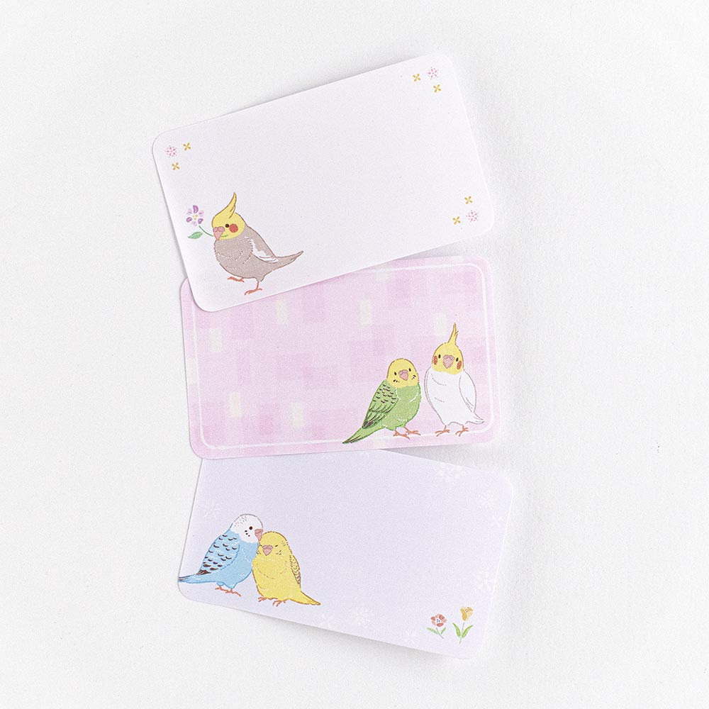 セキセイインコやオカメインコのかわいい仕草に癒されるデザインです。