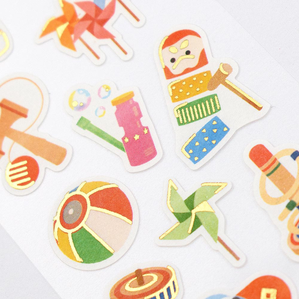 昔懐かしい玩具を賑やかに描きました。