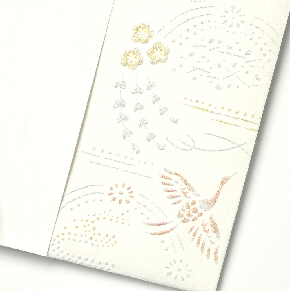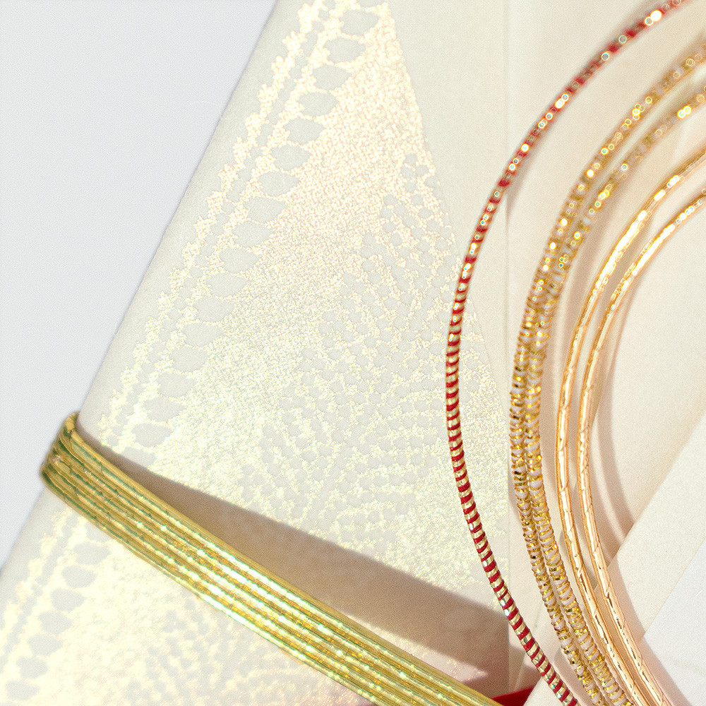 鶴は「パートナーとなった鶴と、一生を添い遂げる」という習性があり、「夫婦の絆」を表す文様でもあります。さりげないパールシルクの輝きが御祝いの気持ちを引き立てます。