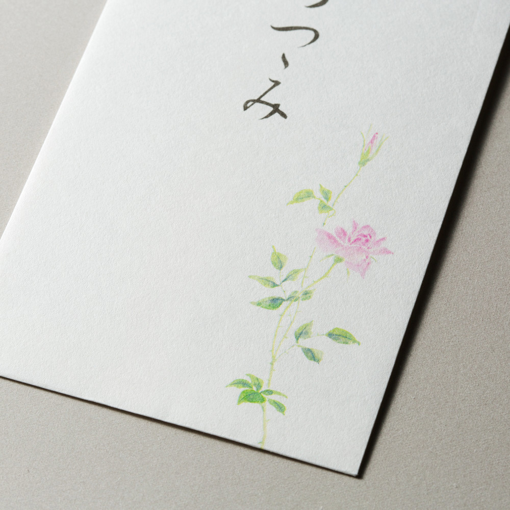 黄なりの温かみのある紙に、一輪のバラの絵柄が上品な印象を与えます。