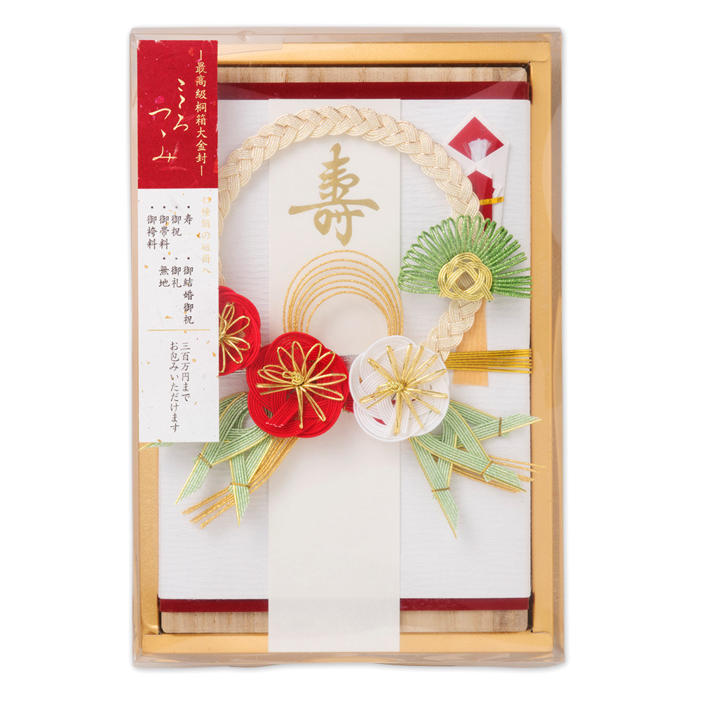松竹梅の豪華な水引で彩った、最高級桐箱大金封です。結納・婚礼・一般の御祝・御礼などにお使いいただけます。
