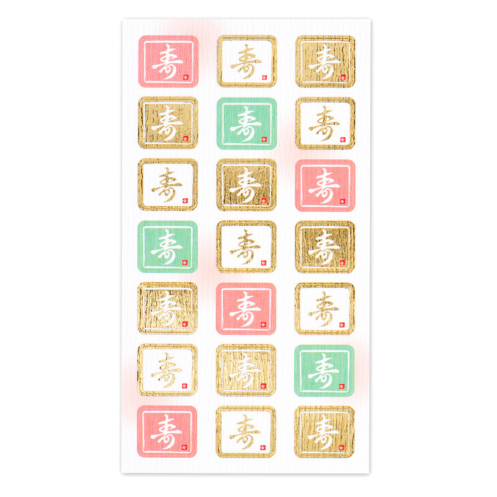 かわいらしい色合いのものから豪華な金箔のものまで、幅広くお使いいただけるデザインをセットにしました。
