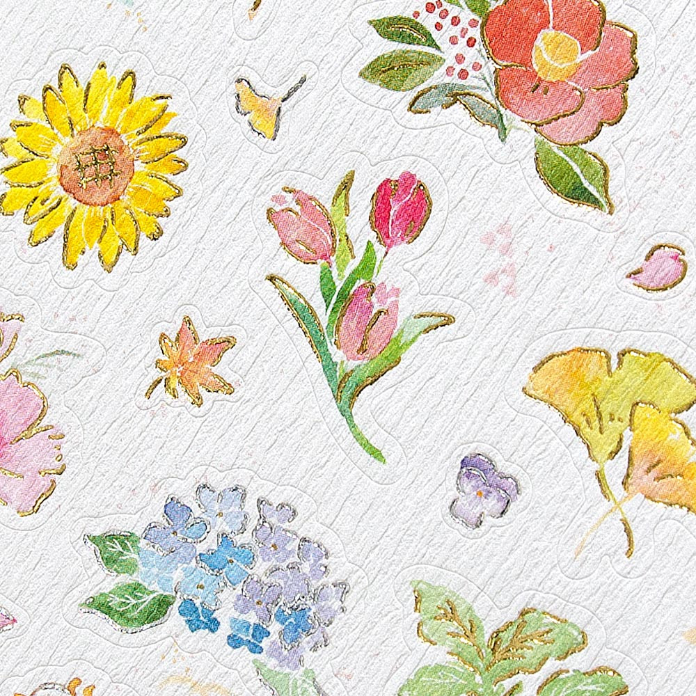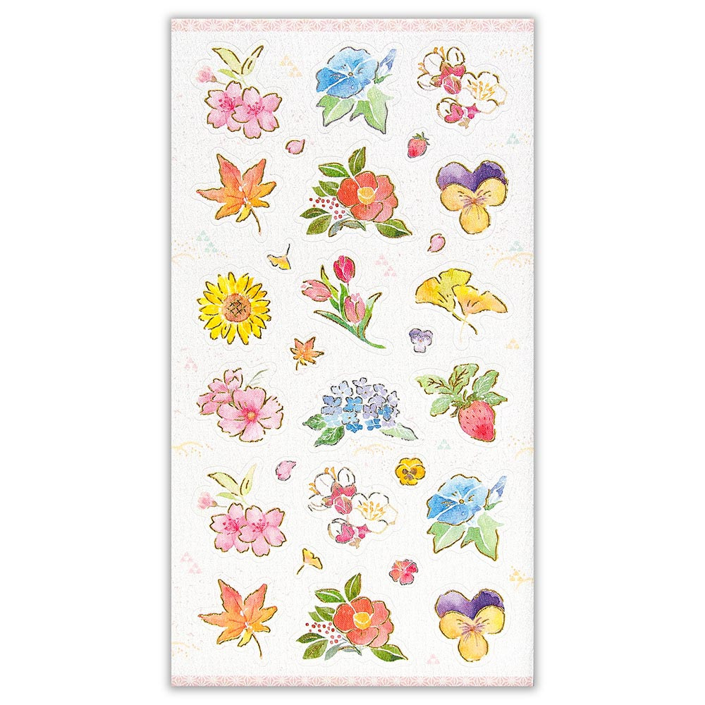 花の形になっているので封緘以外にも飾り付けとして使えます。春夏秋冬季節の花々を和風テイストに仕上げました。