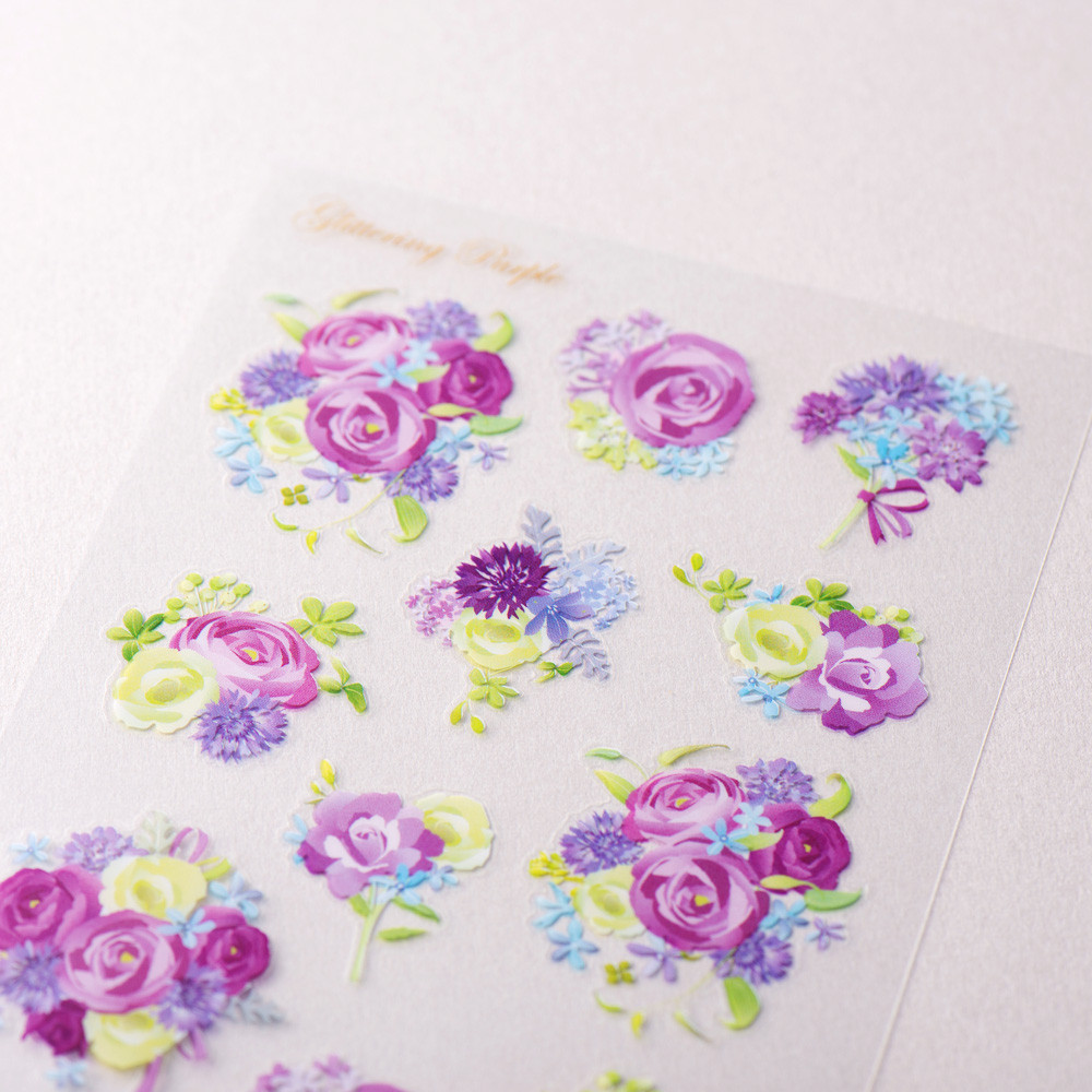 花々の色鮮やかさが映える透明シールです。