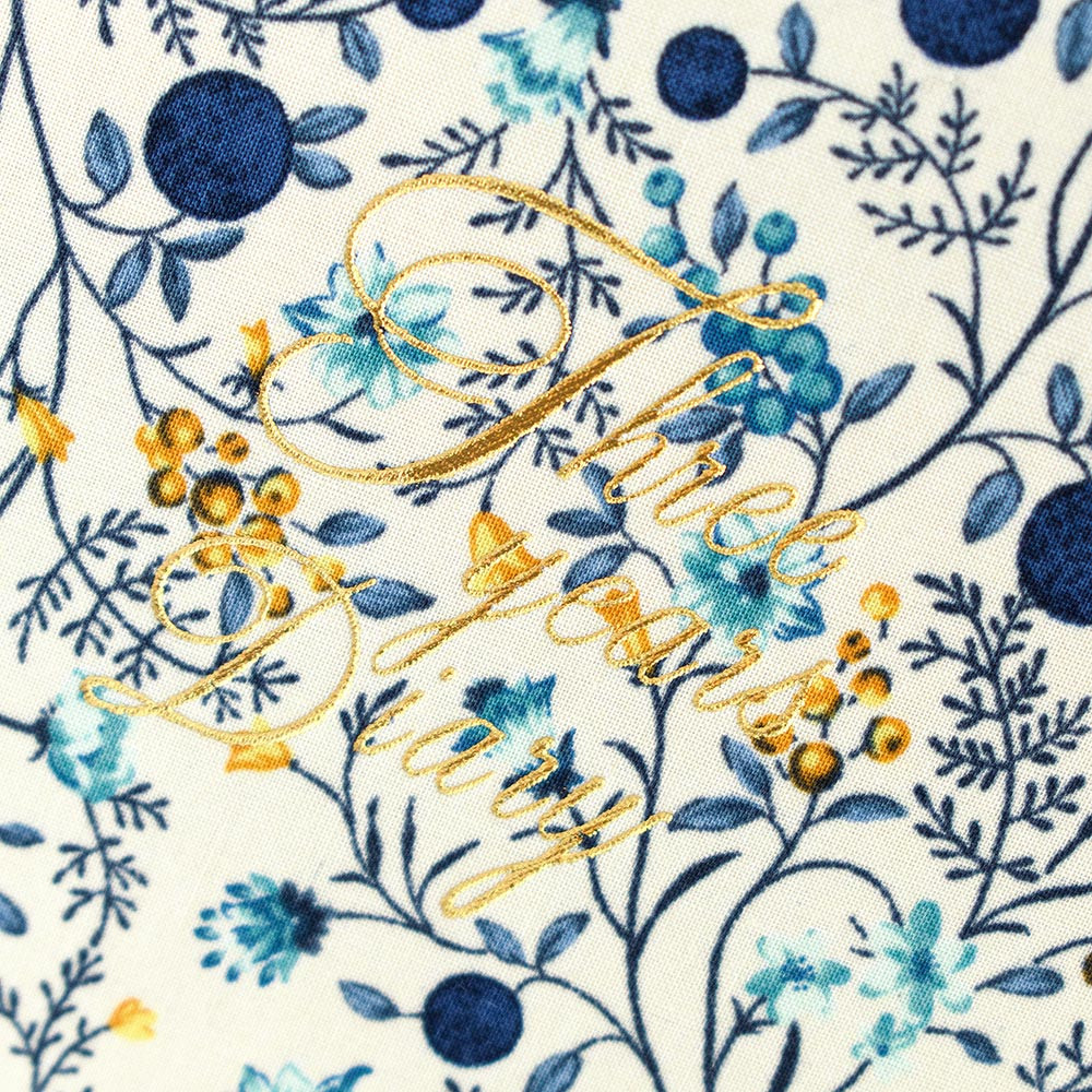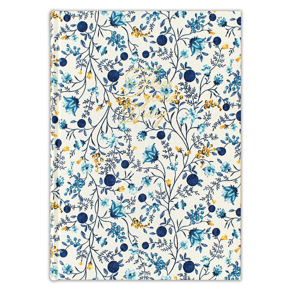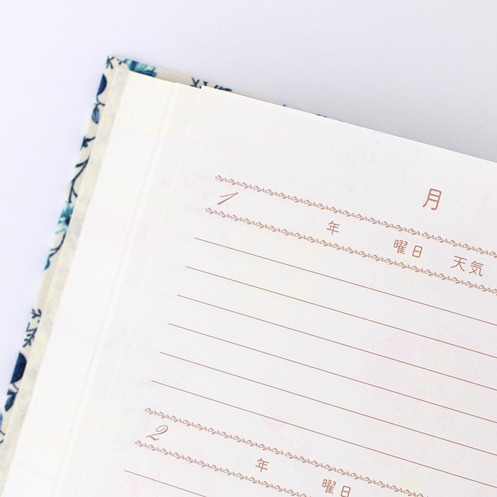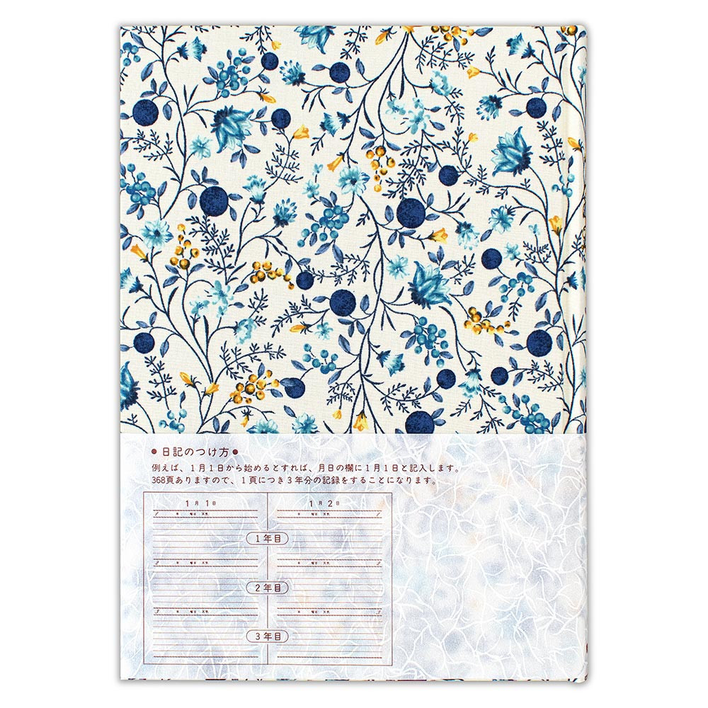 表紙の花柄が華やかな三年日記です。 本文にも花模様が入っています。 一ページに三年分を記入でき、思い出を比べられるようになっています。