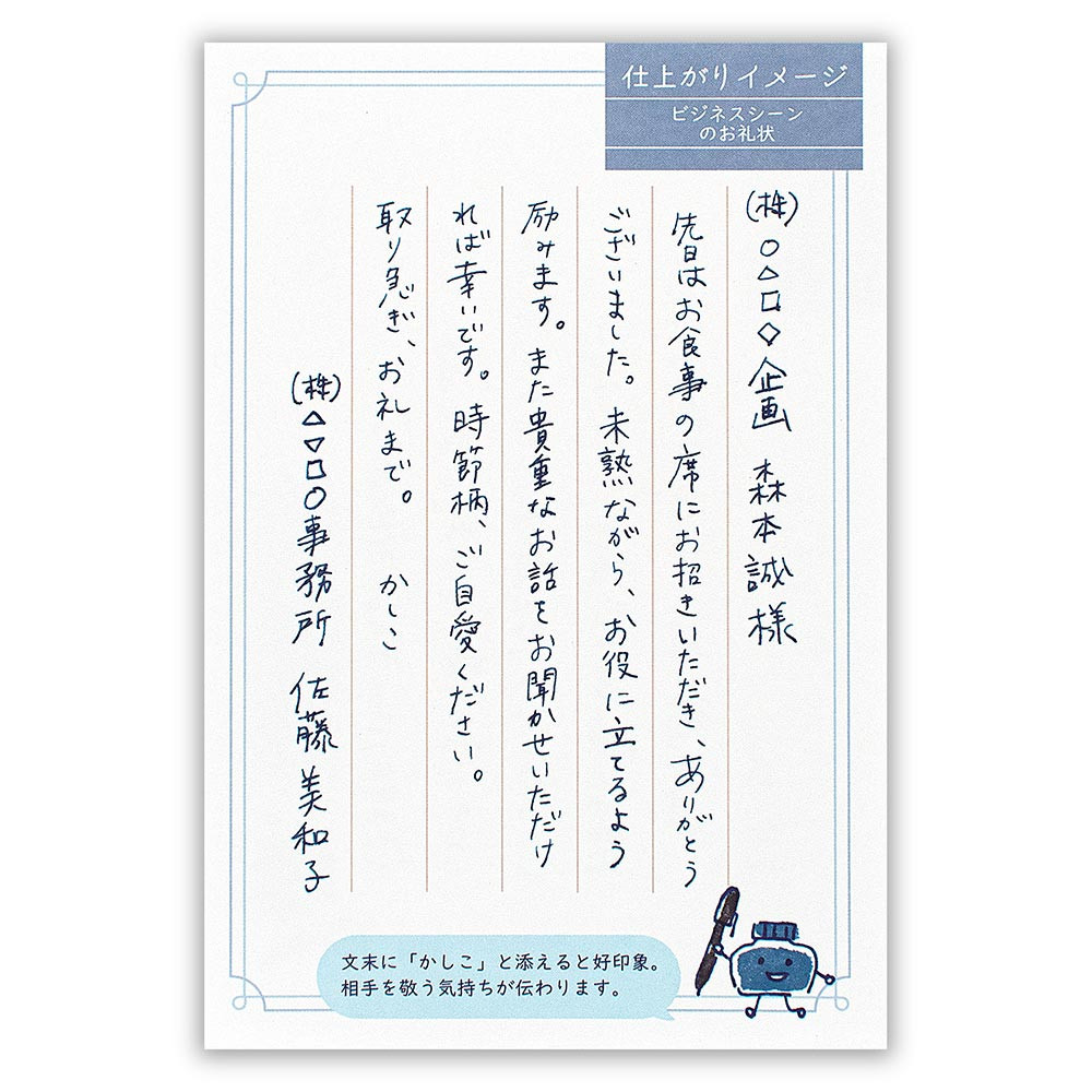 横書仕上がりイメージ(日常のお礼状)、縦書仕上がりイメージ(ビジネスシーンのお礼状)の付録つき。