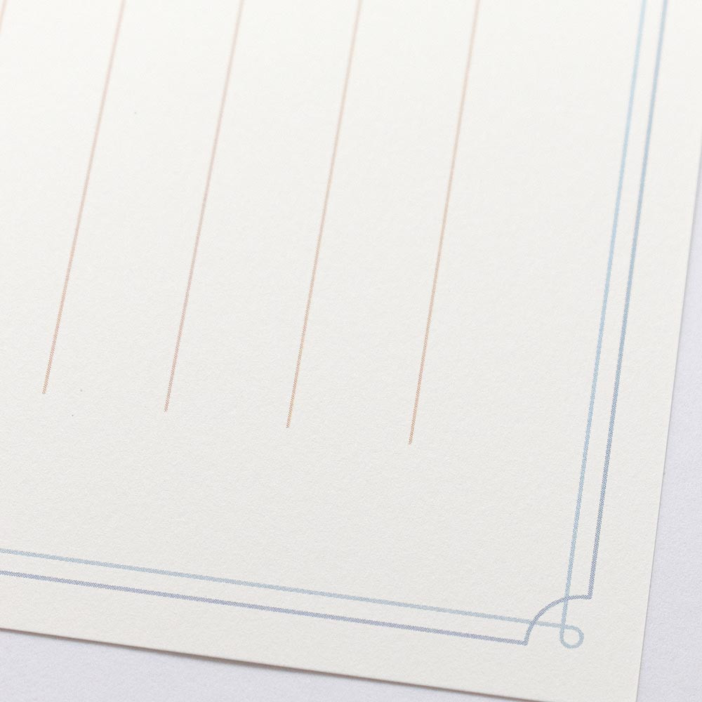どんなシーンでも使いやすいシンプルなブルーフレームのデザインは、読み手に礼儀正しい印象を与えます。美しく書こうと気負わなくても自然にすっきりと読みやすい手紙が仕上がります。